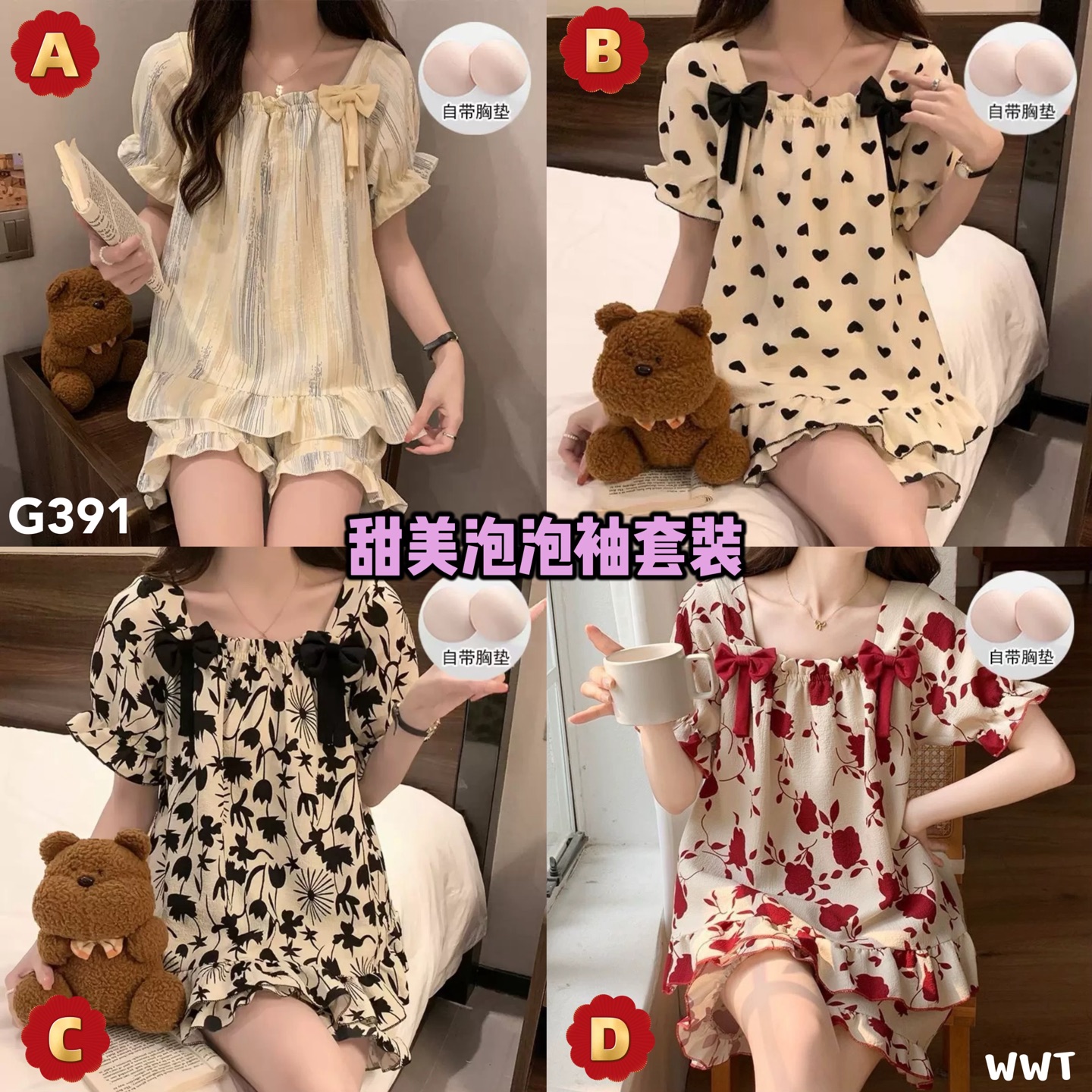 🛍️G391 甜美泡泡袖套装 RM29.90