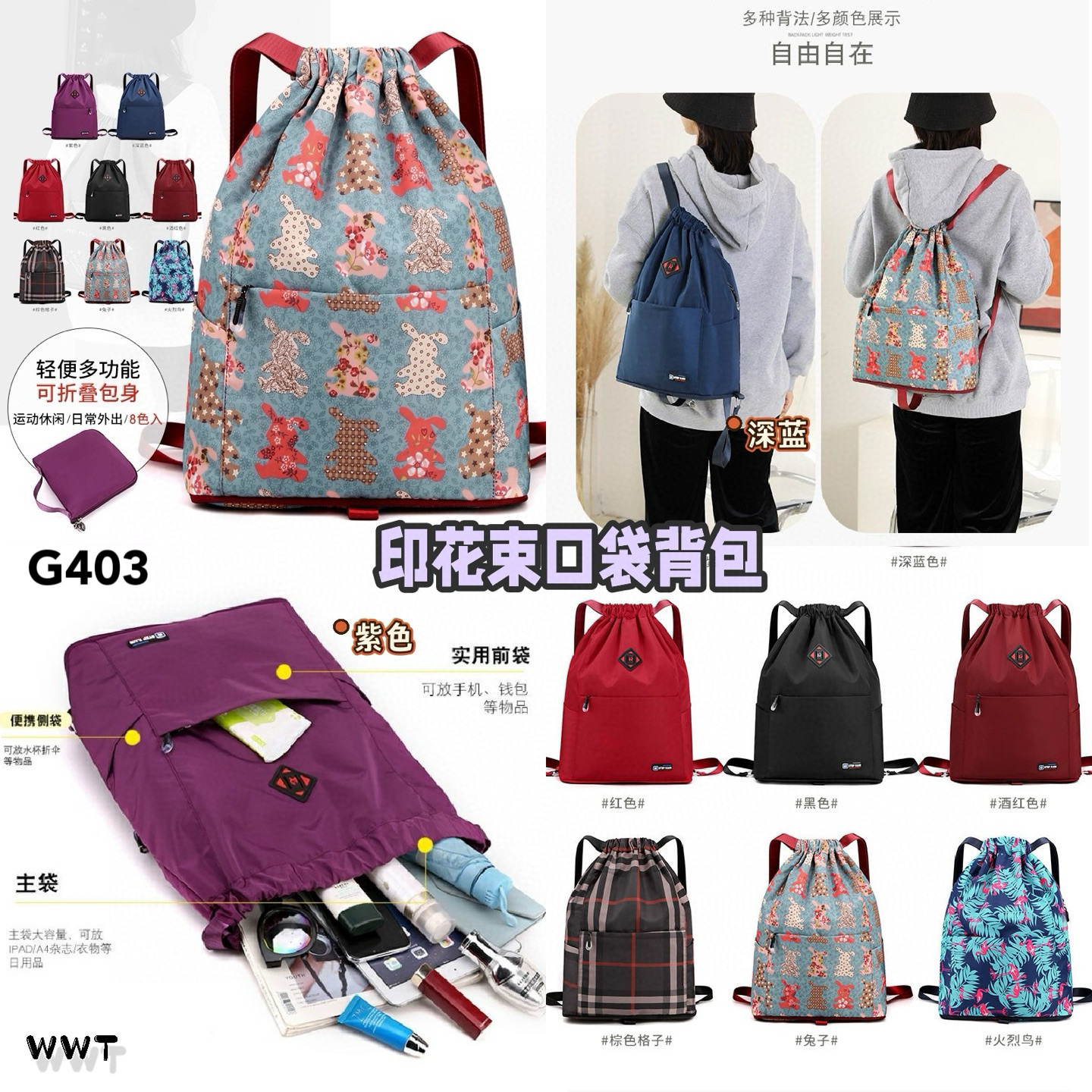 G403 印花束口袋背包 RM28.90