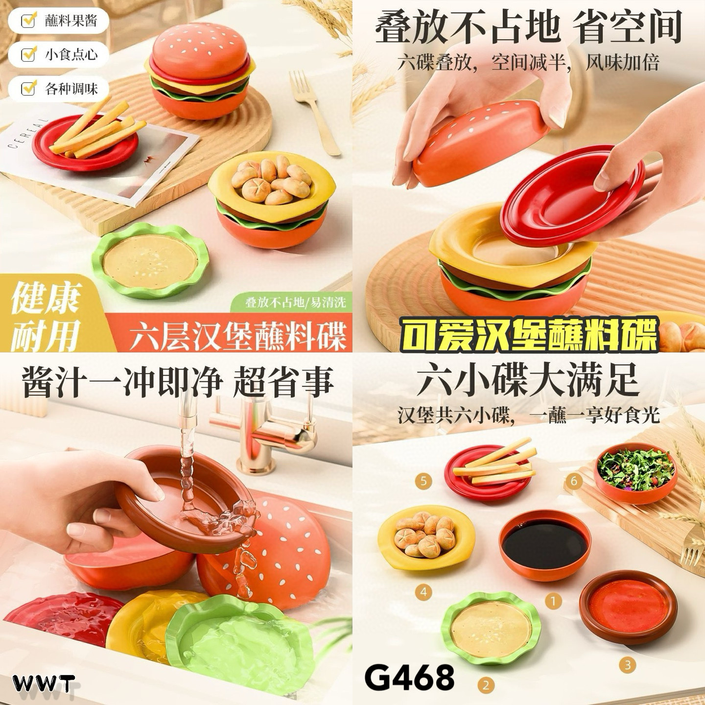 妈耶😍😍‼️,这也太可爱了吧~🍔 趣味汉堡造型,6个小碟收纳不占地,酱料、水果、小零食都能盛。