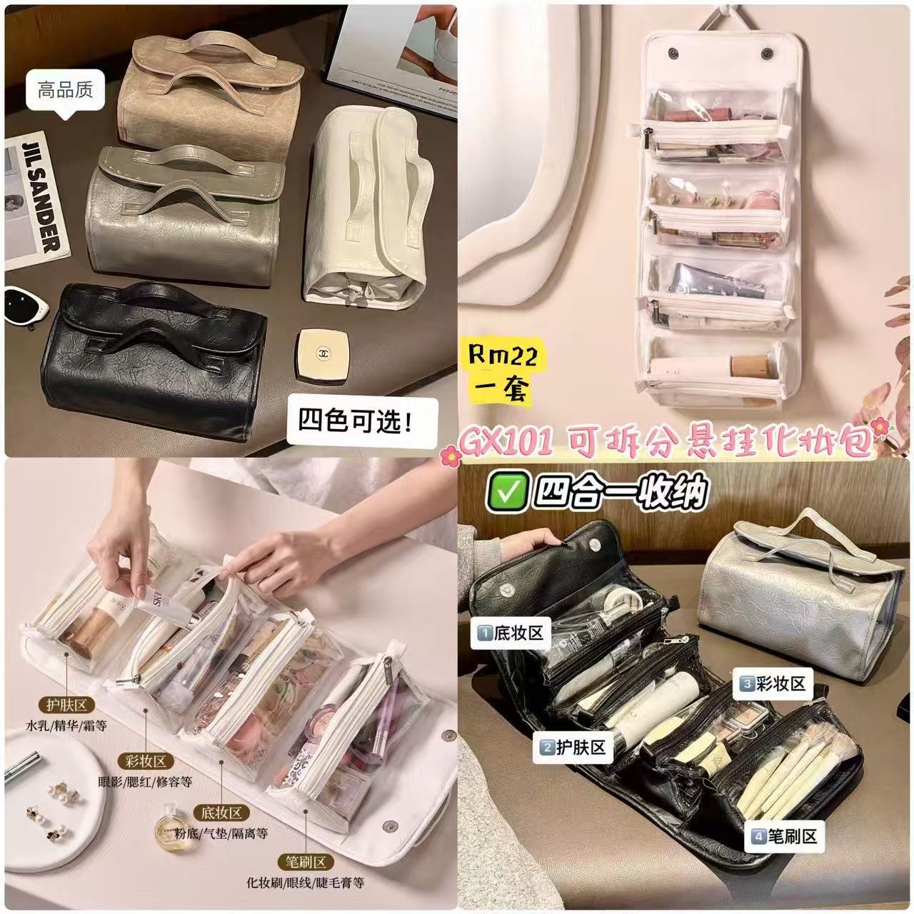GX101 可拆分悬挂化妆包 👑 #一套Rm22 颜色👉卡其 灰银 黑色 米白