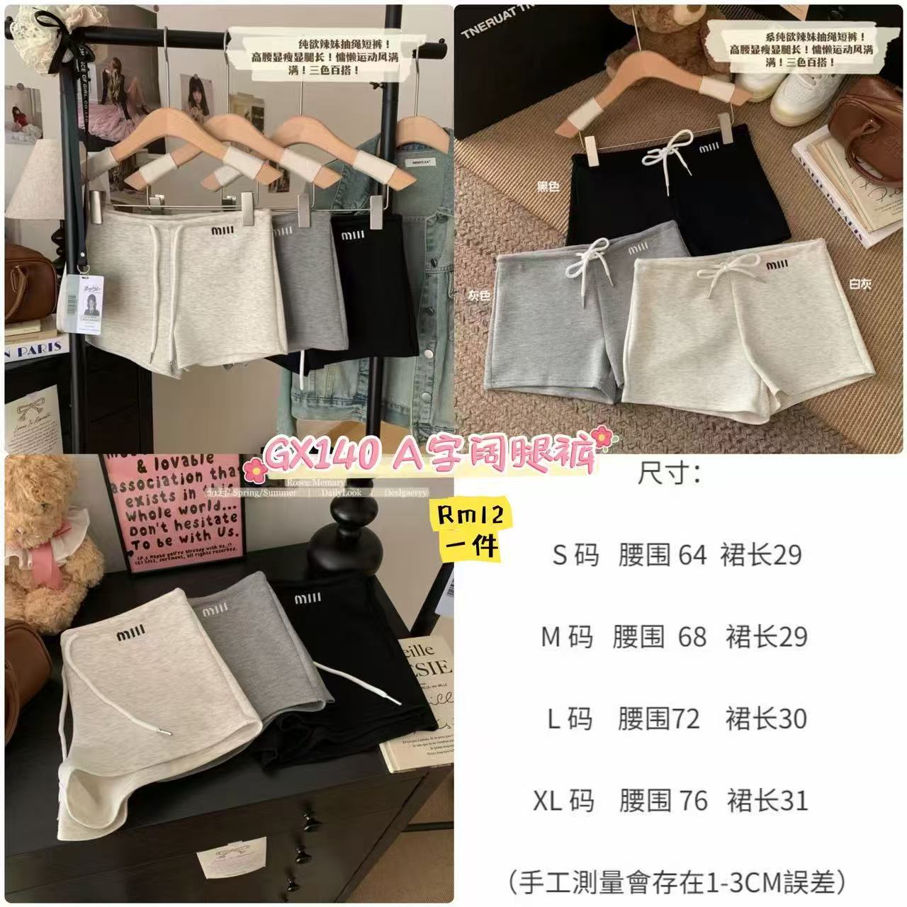 GX140 A字阔腿裤 👑 #Rm12 一件 Size👉S-XL 颜色👉白灰/灰色/黑色