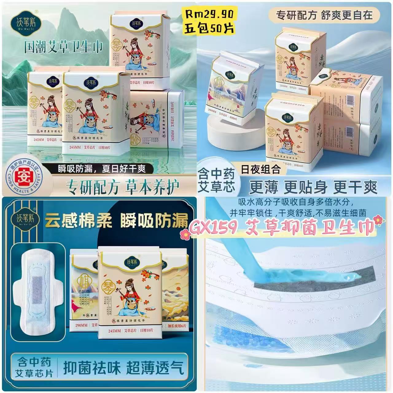 GX159 艾草抑菌卫生巾 👑 #Rm29.90 五包50片