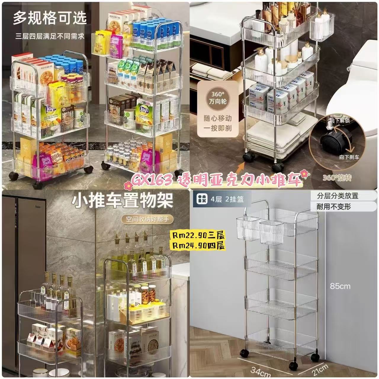 GX163 透明亚克力小推车 👑 #三层Rm22.90 #四层Rm24.90