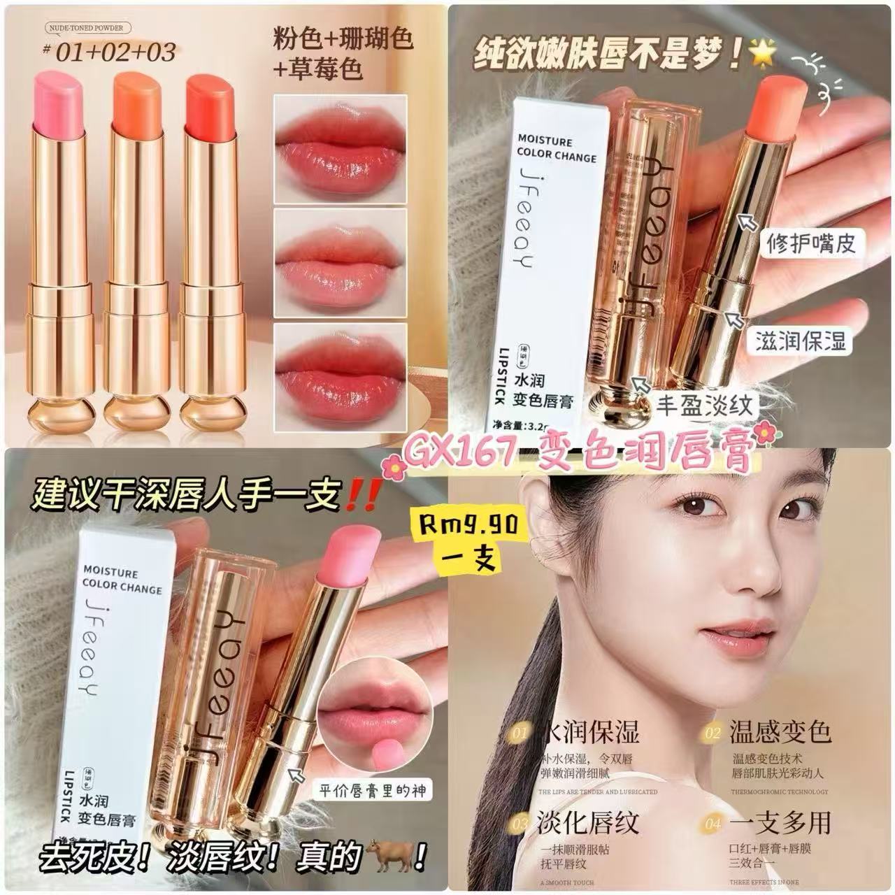 GX167 变色润唇膏 👑 #Rm9.90 一支 颜色👉01/02/03