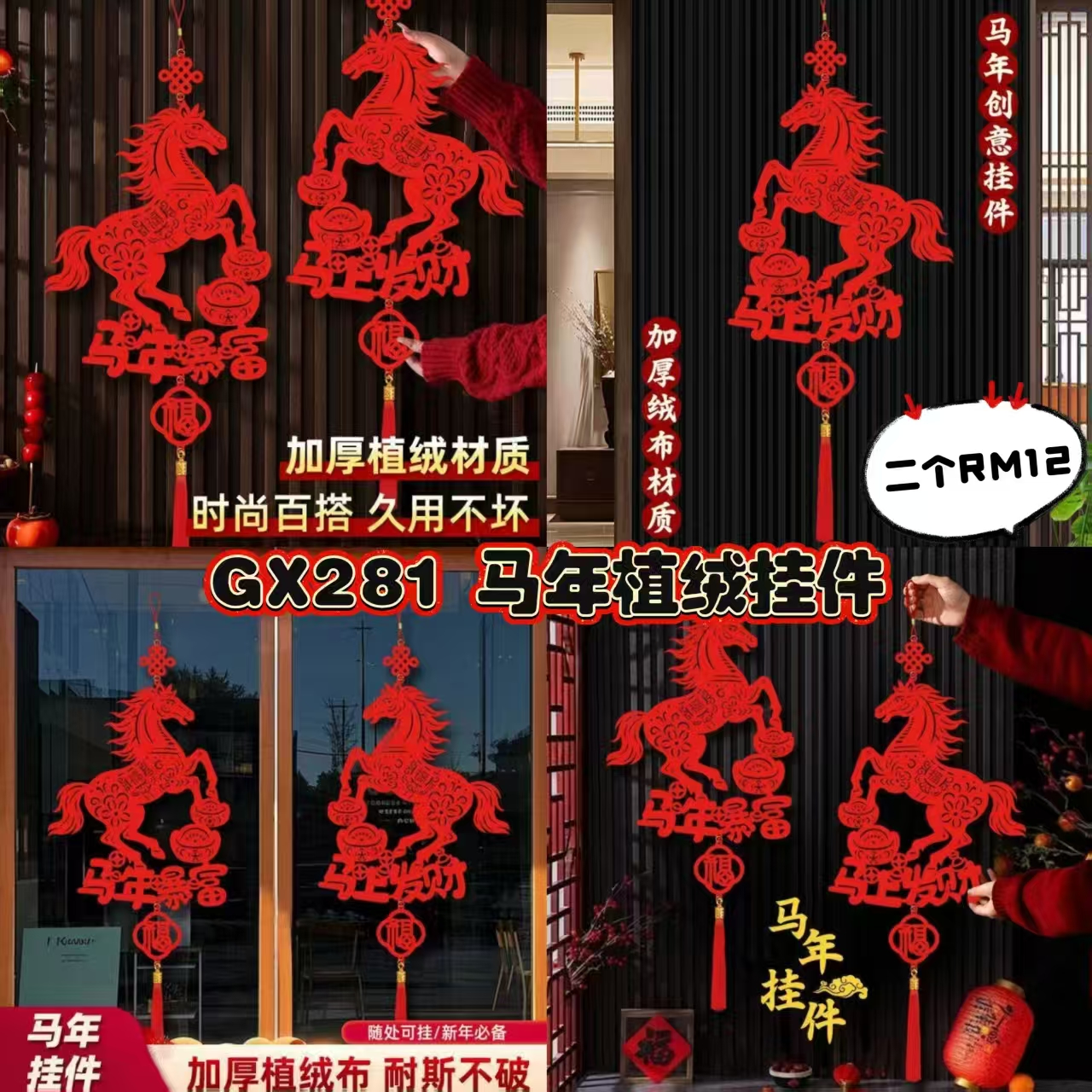 马年新款植绒挂件 新年福字门贴过年入户门室内装饰春节挂饰