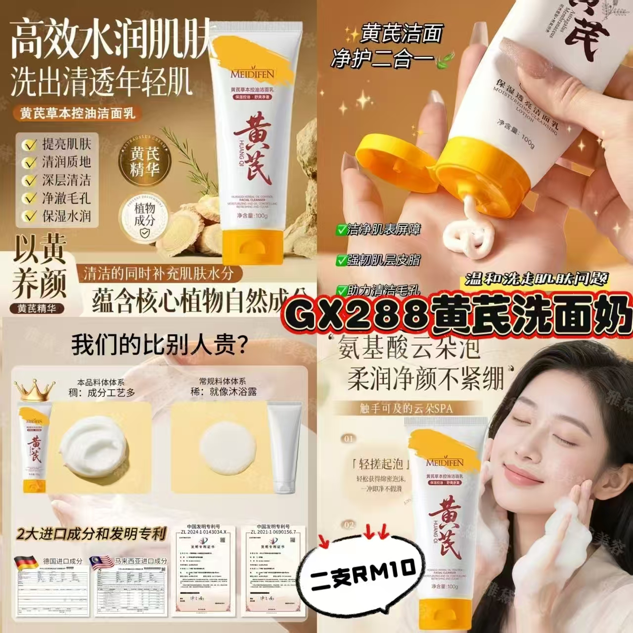 黄芪草本控油洁面 国货保湿控油丰富细腻泡沫舒爽净澈 男女洗面奶