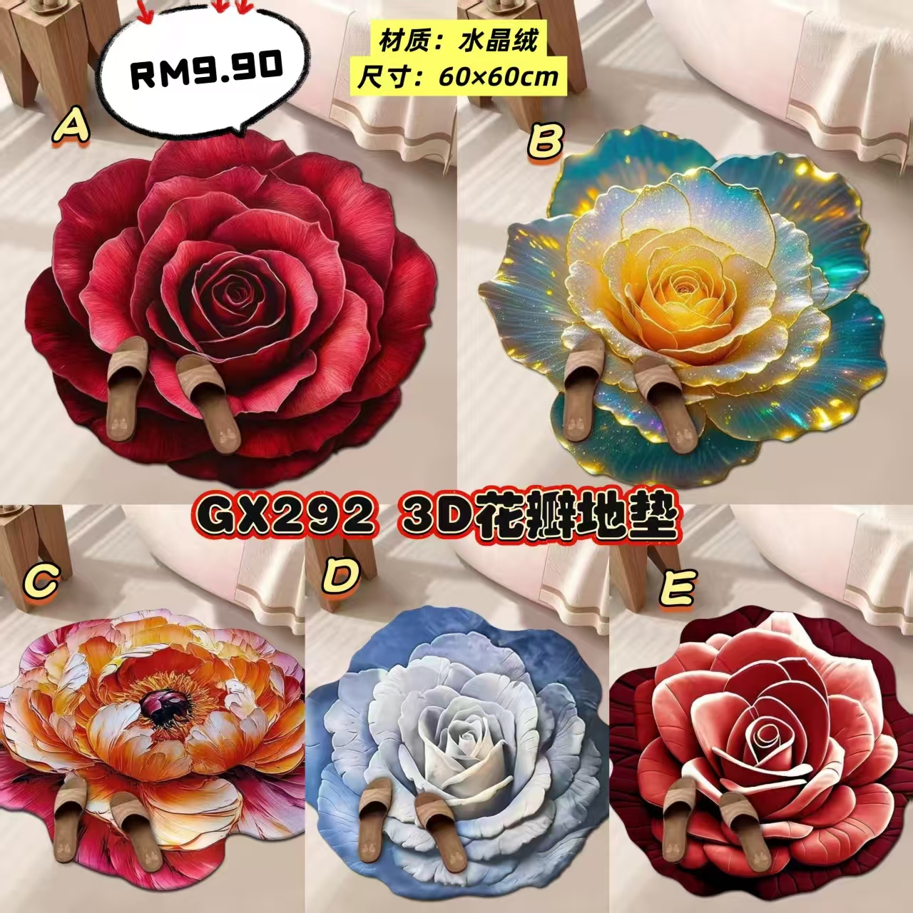 GX292 3D花瓣地垫 👑 #一片RM9.90