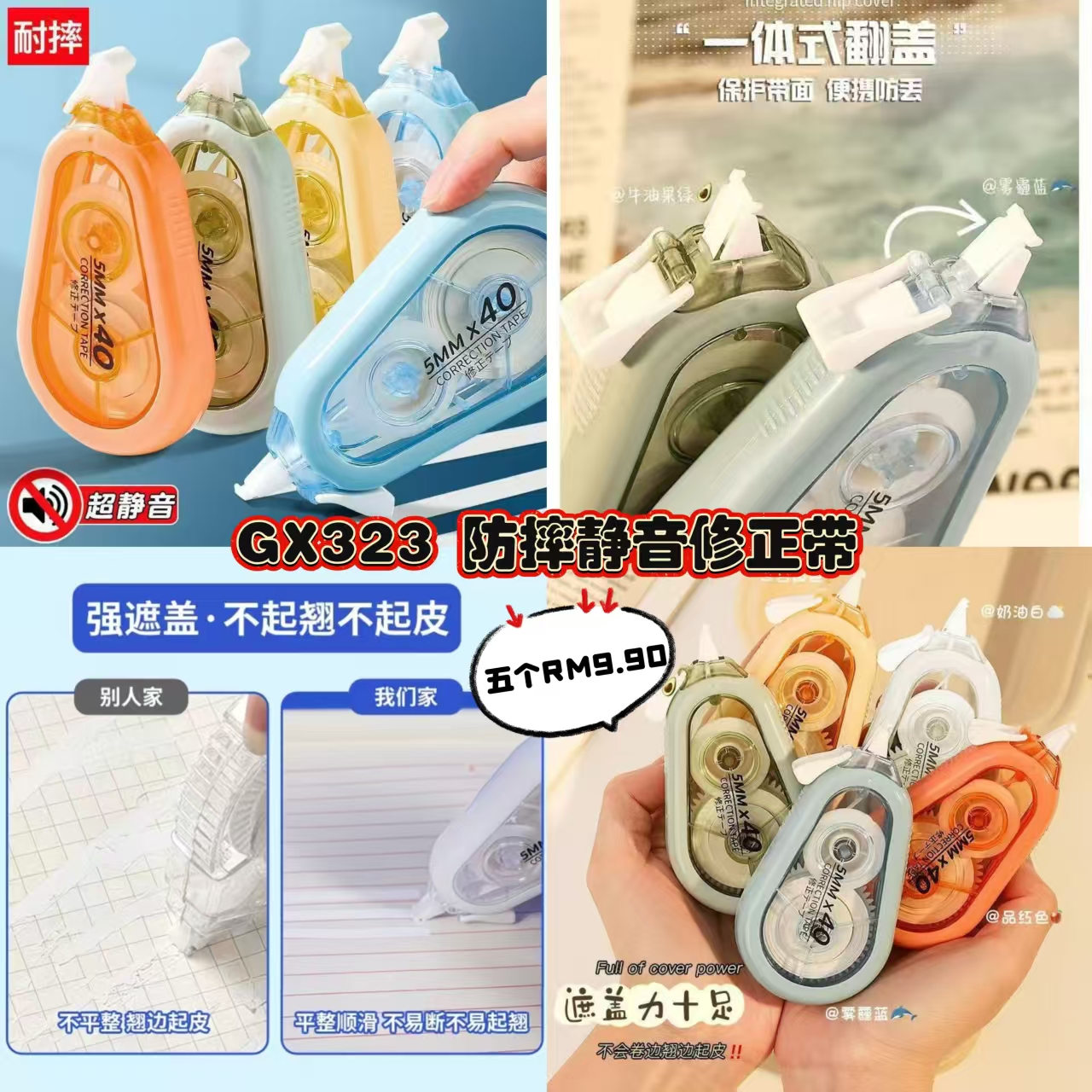 GX323 仿摔静音修正带(5个)