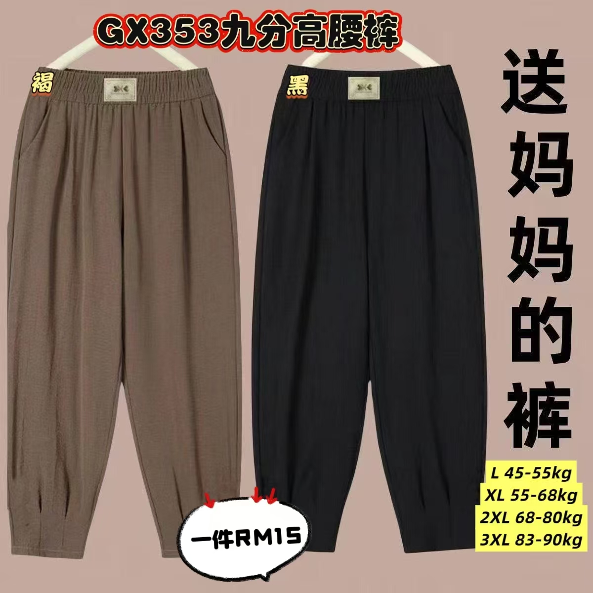 GX353 九分高腰裤 👑 #一件RM15