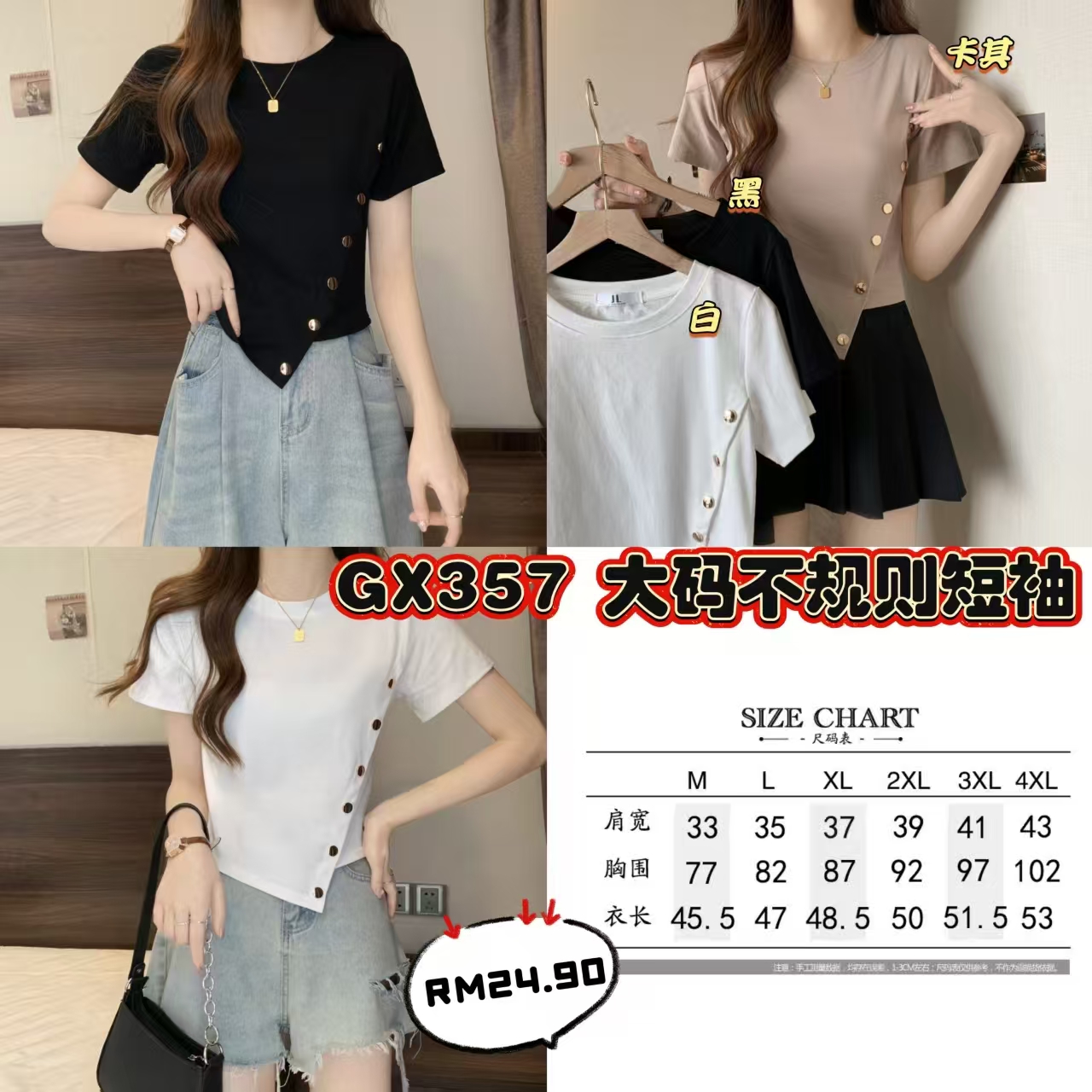 GX357 大码不规则短袖 👑 #一件RM24.90