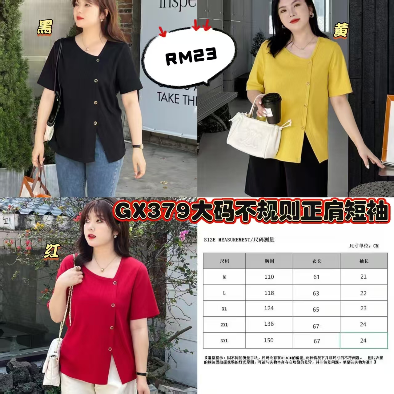 Be the first to review “GX379 大码不规则正肩短袖(1件)”
