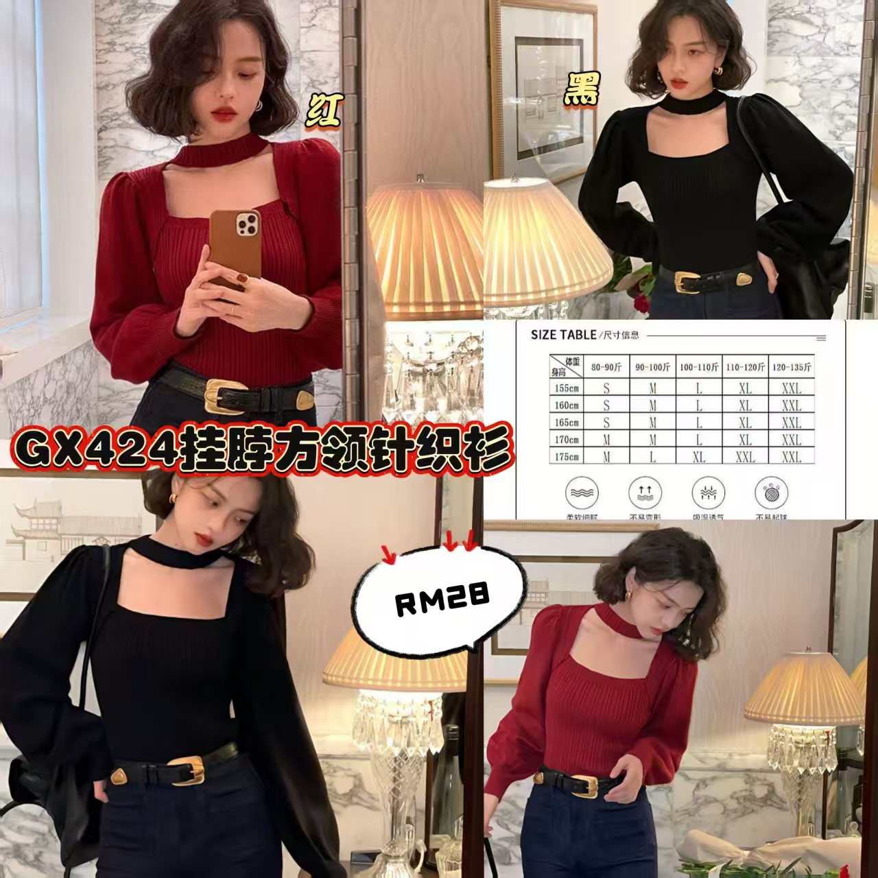 GX424 挂脖方领针织衫 👑 #一件RM28