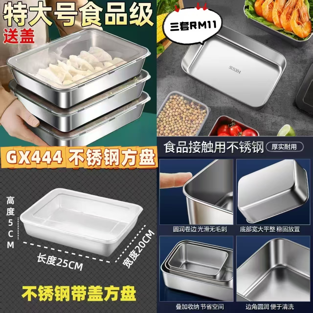 304不锈钢食品级加厚方盘,凉菜~蒸盘烧烤多用盒❤️