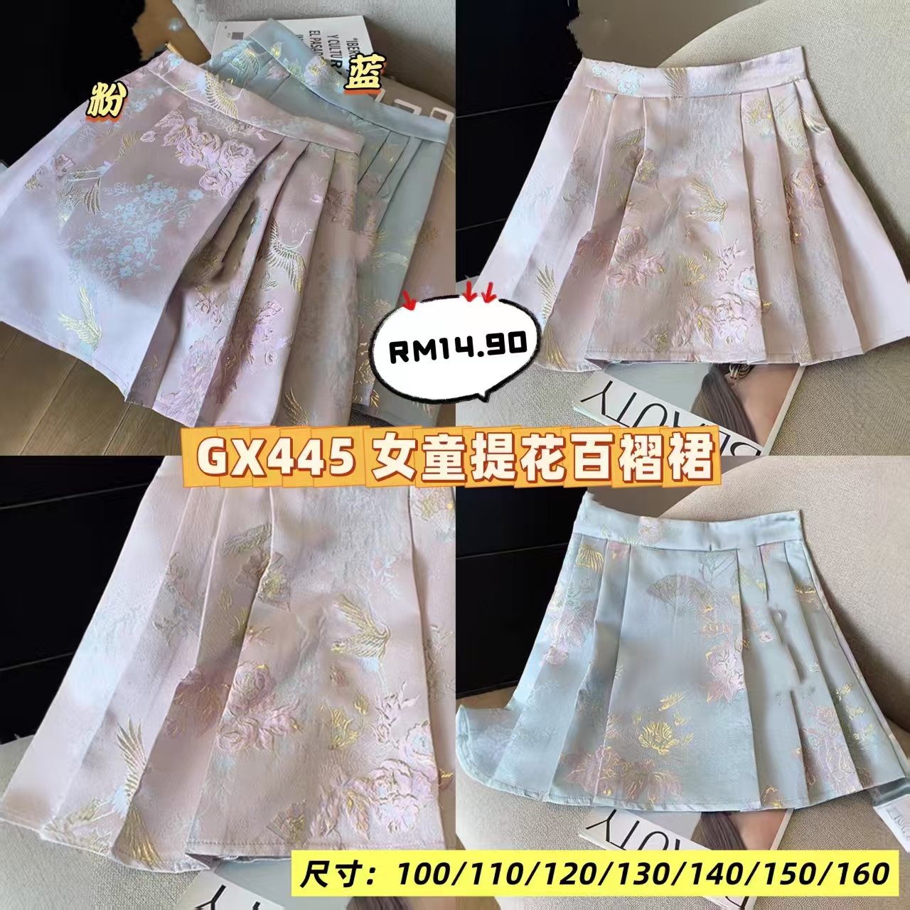 GX445 女童提花百褶裙 👑 #一件RM14.90