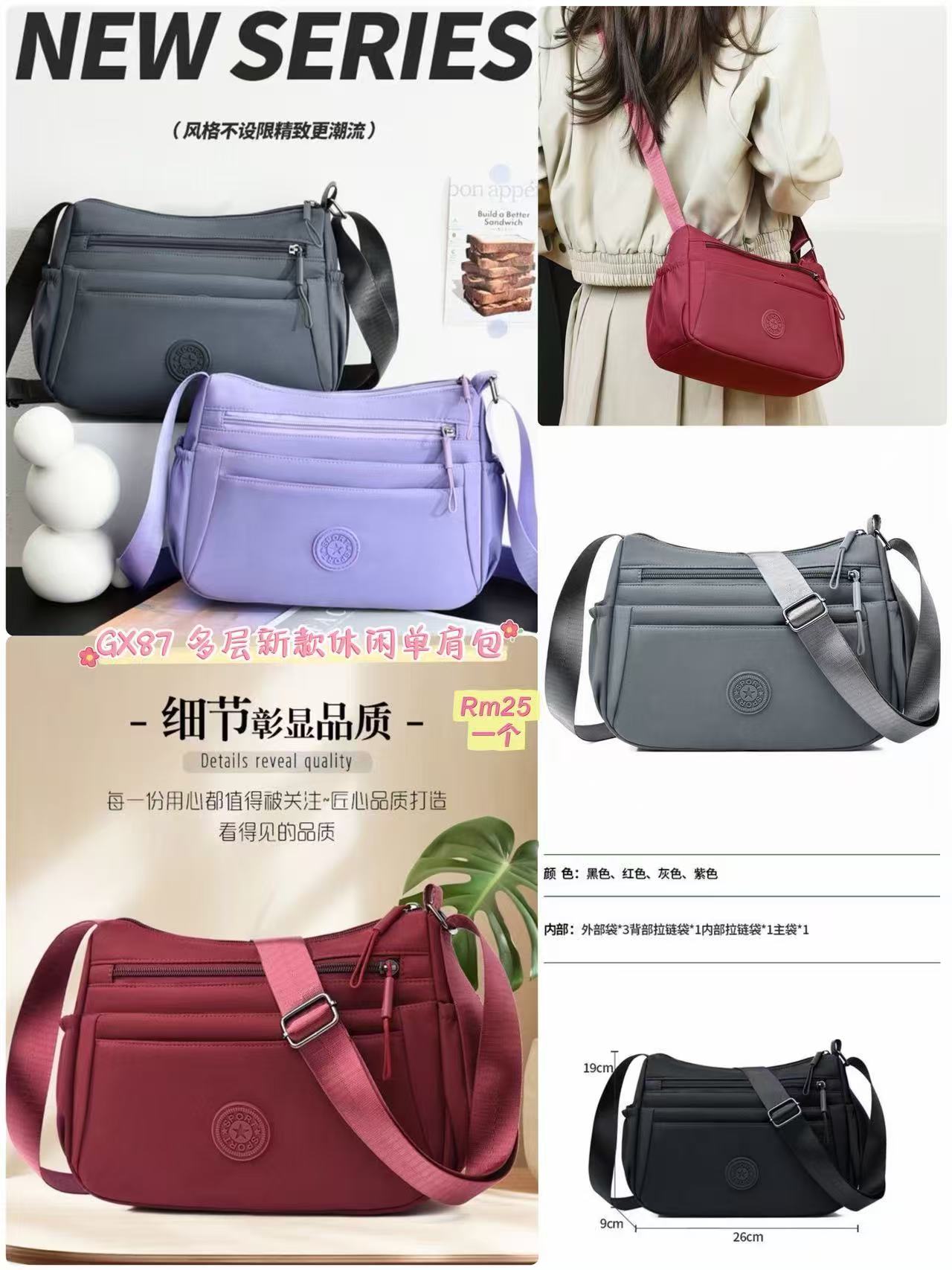 GX87 多层新款休闲单肩包 👑 #Rm25 一个 颜色👉紫 红 黑 灰