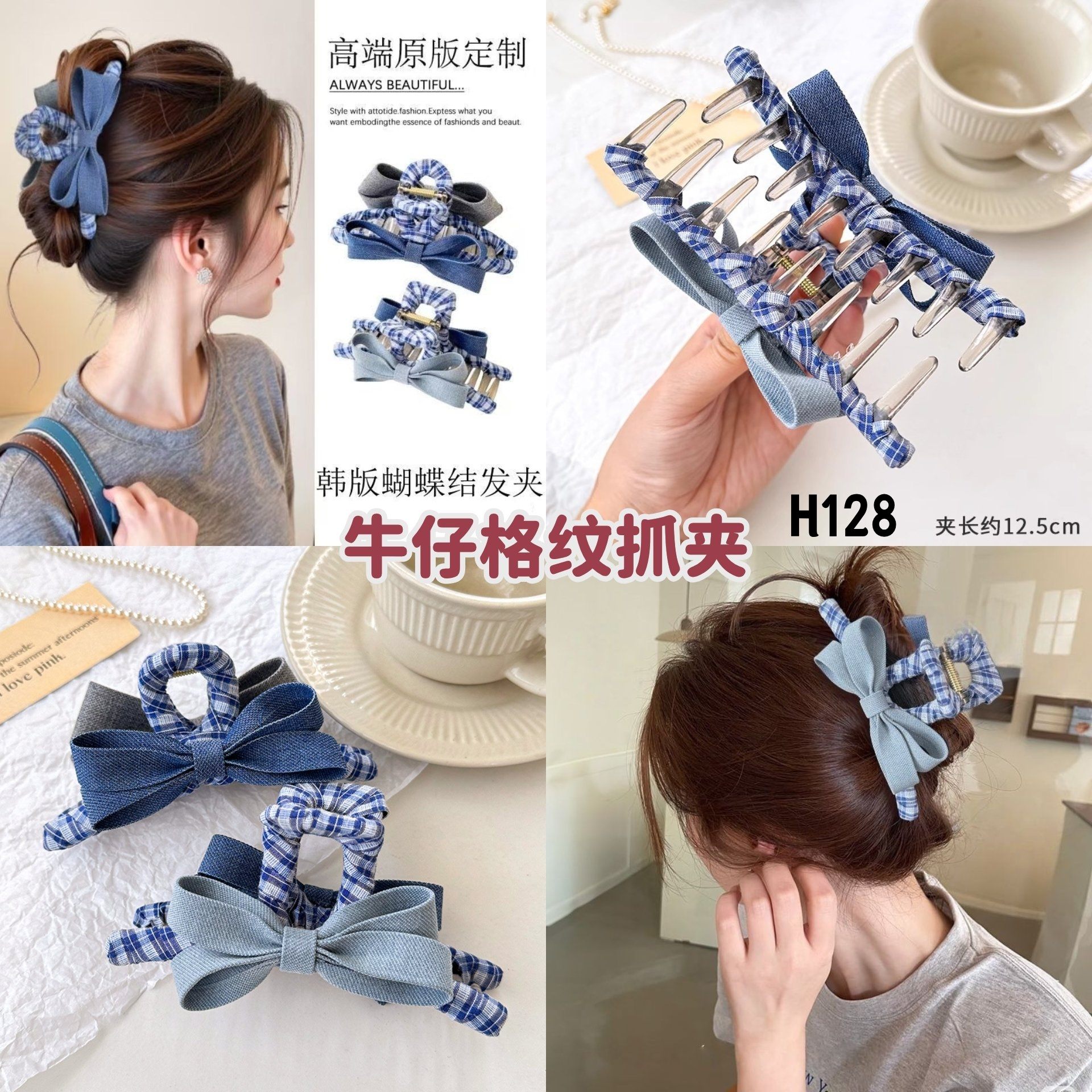 日常出门,随手一夹就能搞定发型🥰🥰。牛仔+格纹+蝴蝶结设计,温柔又带点俏皮感,轻松点缀整体造型‼️