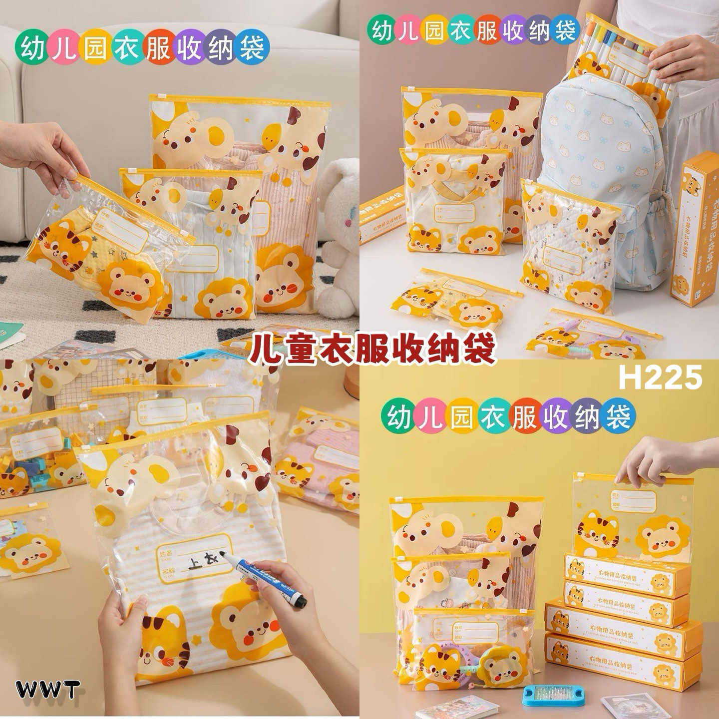🦁 上托儿所的小朋友每天换洗衣物,一个袋子一件,早上再也不手忙脚乱。卡通图案超级可爱,宝宝自己也能轻松找到~还可以重复使用,环保又整齐👍
