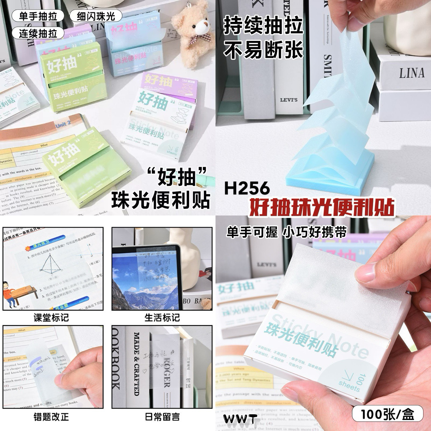 学习做笔记、复习错题时,随手一撕就能写,透明带珠光的纸,贴在书上不挡字,标注重点很方便。1盒100张,在做笔记的同时还可以保护书本整洁🤩