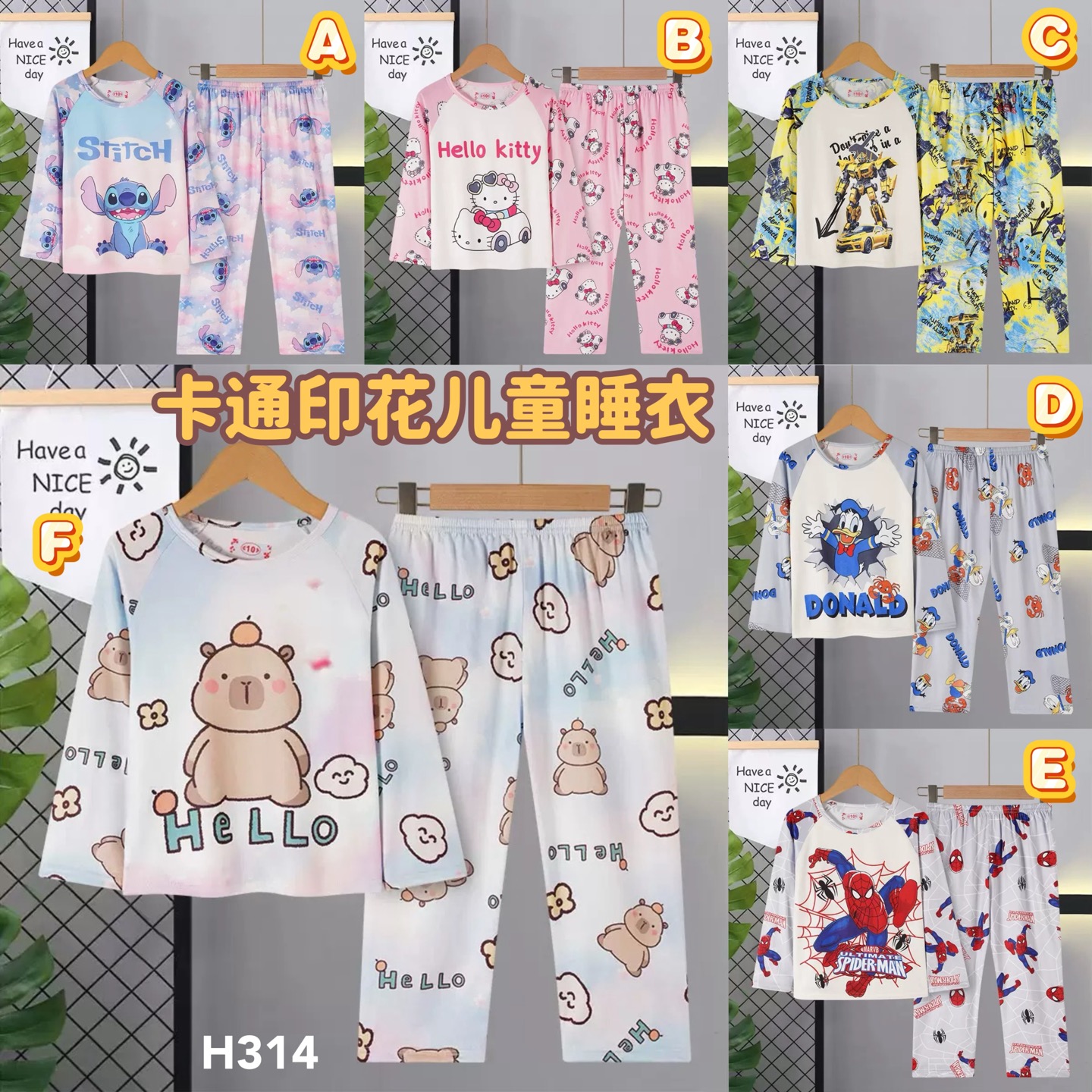 H314 卡通印花儿童睡衣 RM19.90