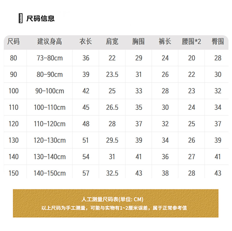 | 尺码 | 80码, 90码, 100码, 110码, 120码, 130码, 140码, 150码 |
