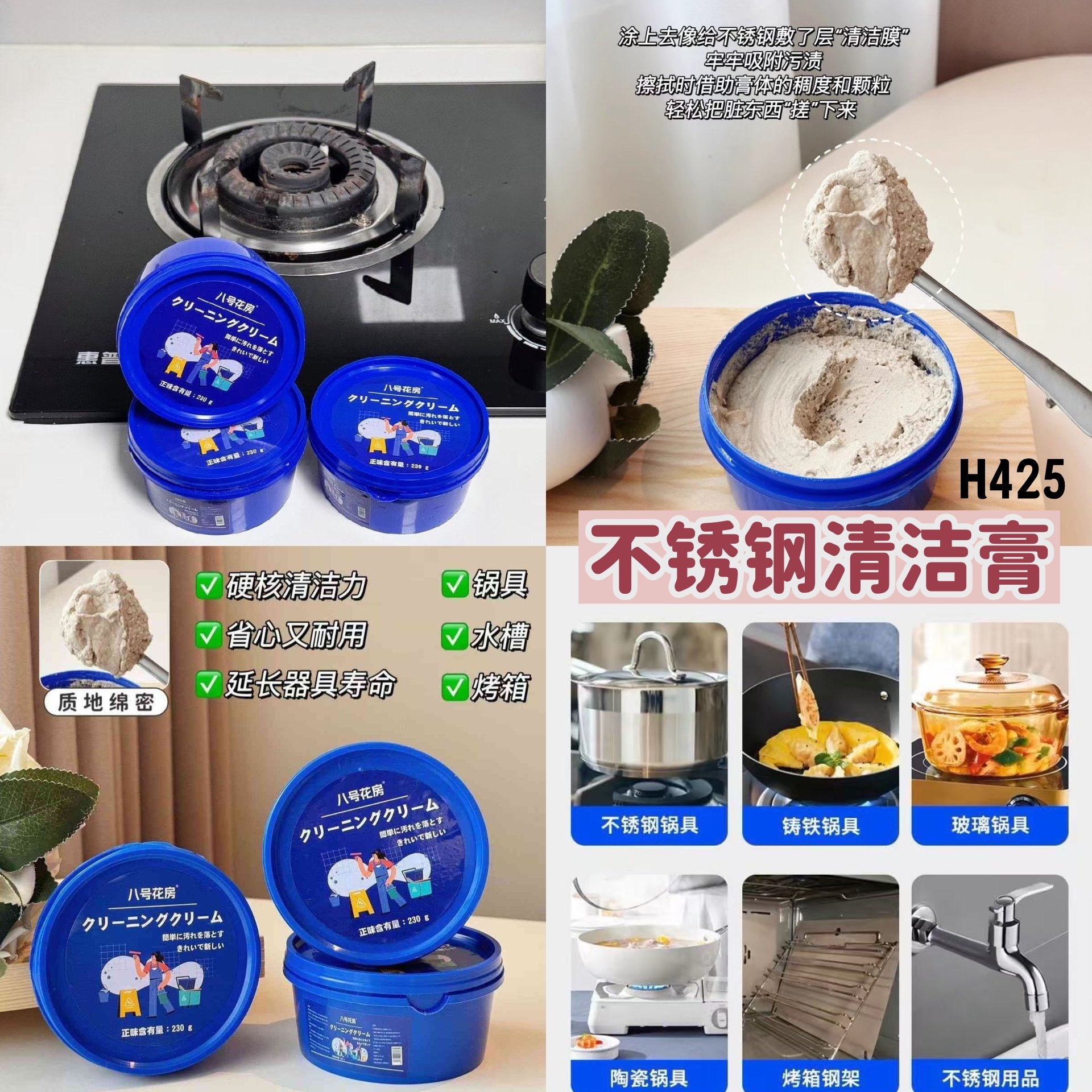 厨房里的锅具、水槽、灶台是不是常常油渍、水渍、污垢清不干净😔😔?这款清洁膏质地绵密,轻轻一抹就能被擦掉,省力又干净‼️