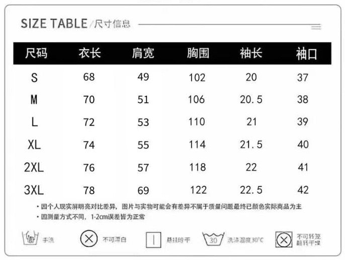 | 尺寸 1 | S, M, L, XL, 2XL, 3XL |