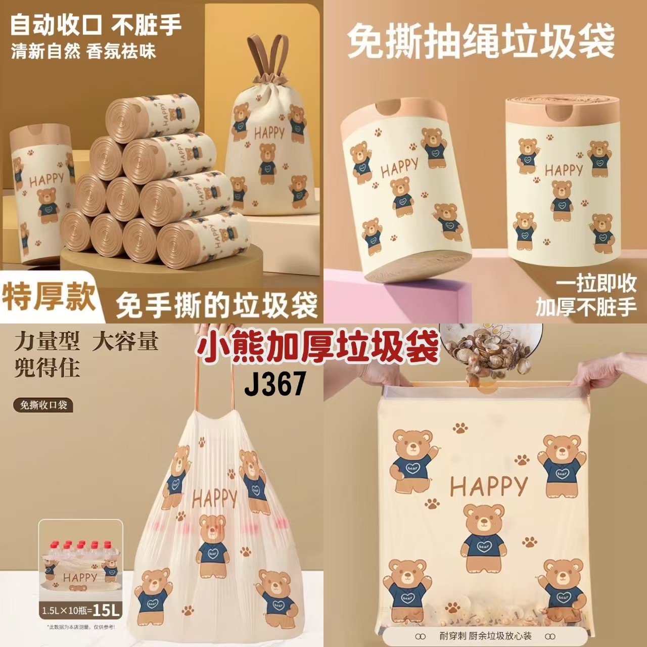 J367 小熊加厚垃圾袋 (2卷100个)