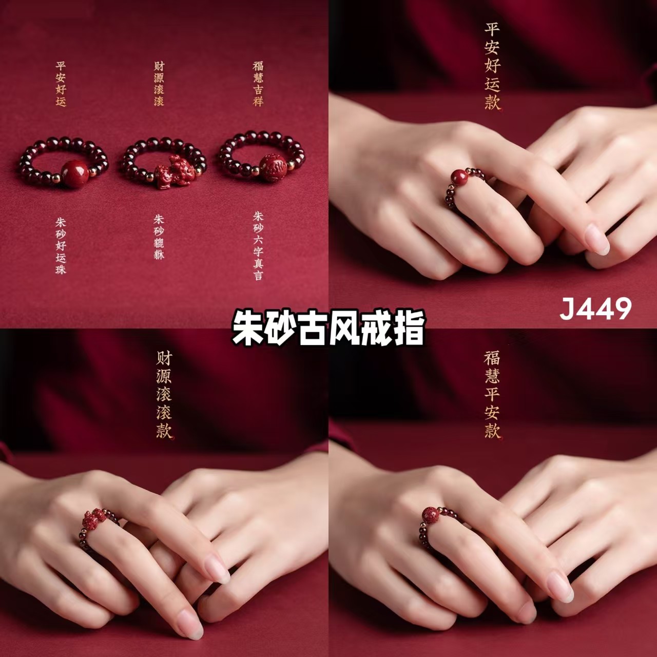J449 朱砂古风戒指(1个)