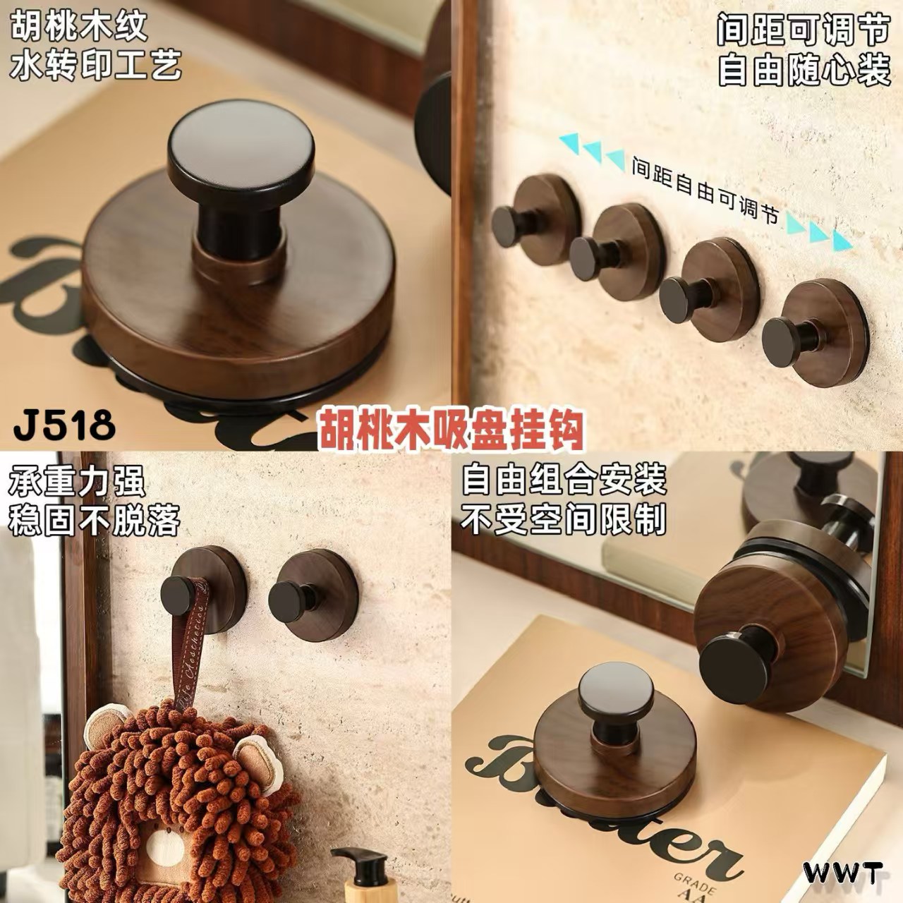 🛍️J518 胡桃木吸盘挂钩 RM10(4个)