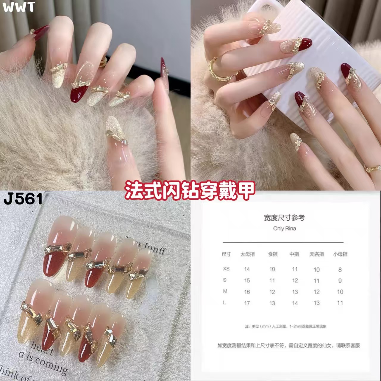 J561 法式闪钻穿戴甲(1套)