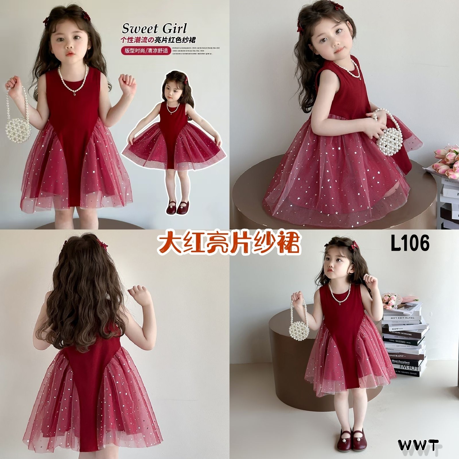 大红亮片纱裙😍😍!仙气蓬蓬的纱+显白红色,走哪都自带小公主光环~