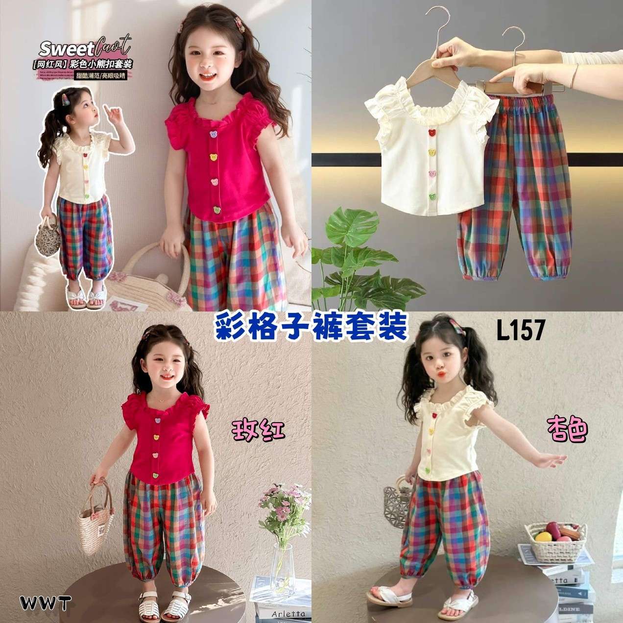 小朋友穿上就是“甜妹本人”🍬 彩色格子裤活泼又俏皮~上衣荷叶边设计可爱加倍,新年走亲戚妥妥吸睛小娃娃‼️