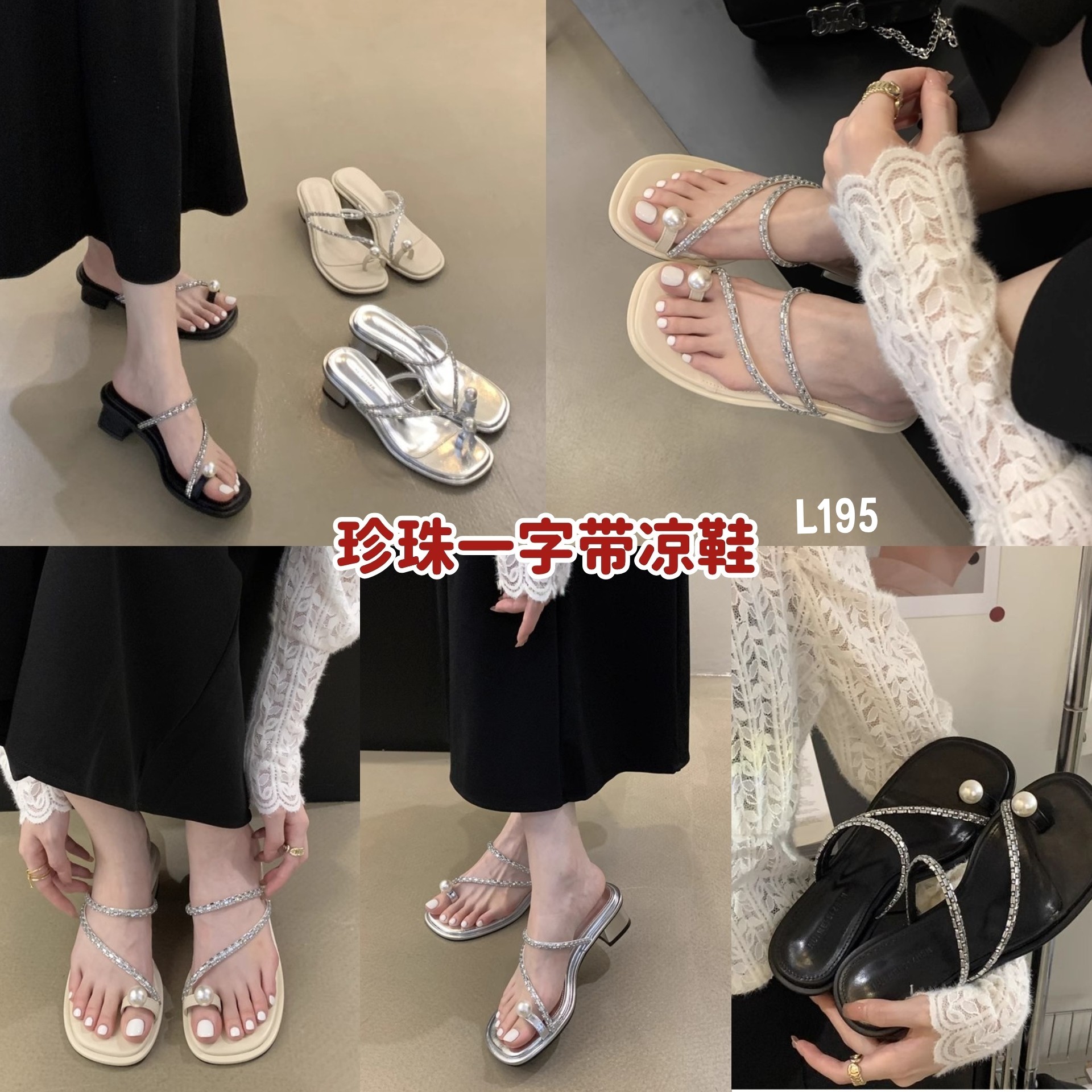 🛍️L195 珍珠一字带凉鞋 RM38