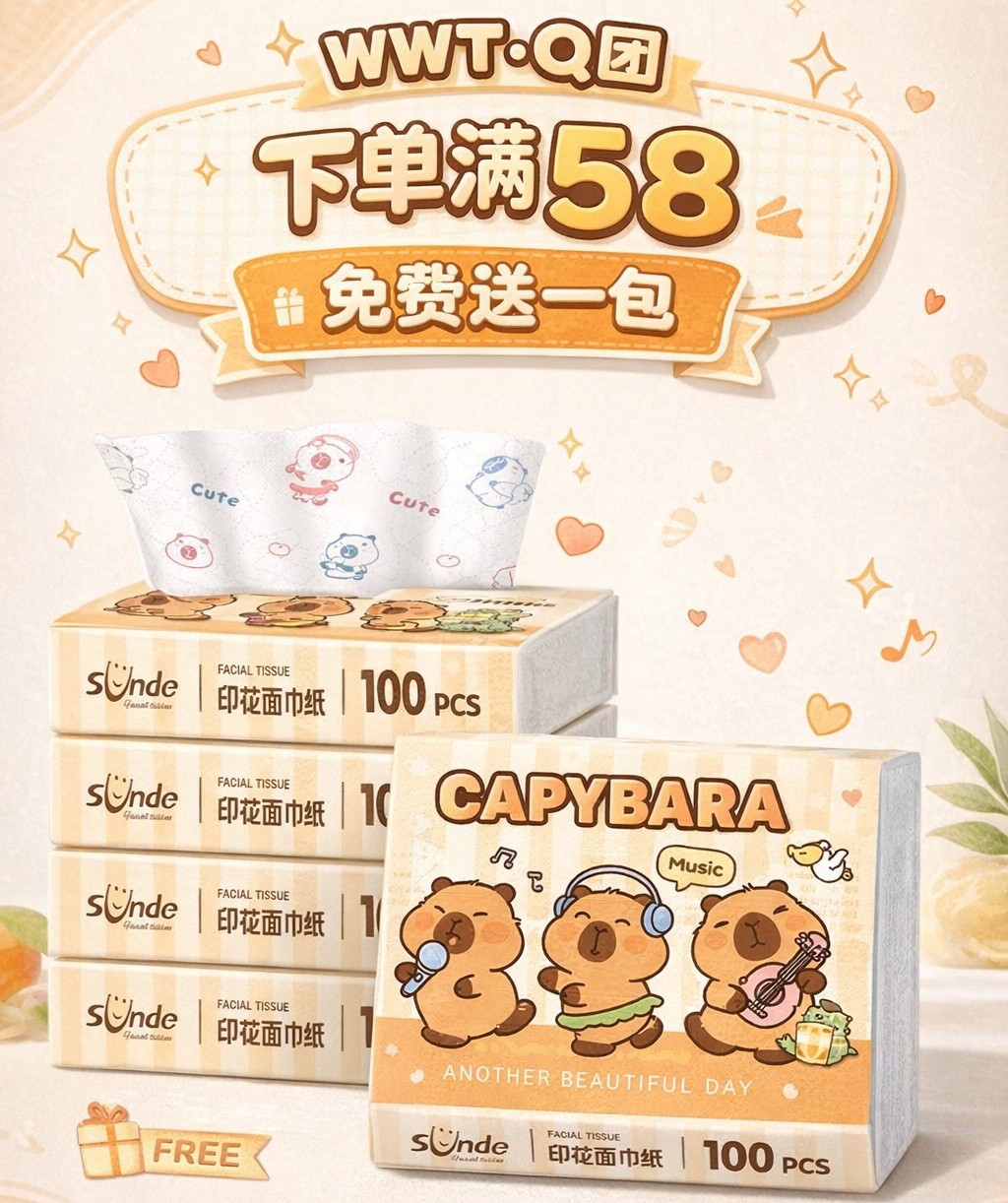 #下单满58送卡皮巴拉纸巾 【Q501】
