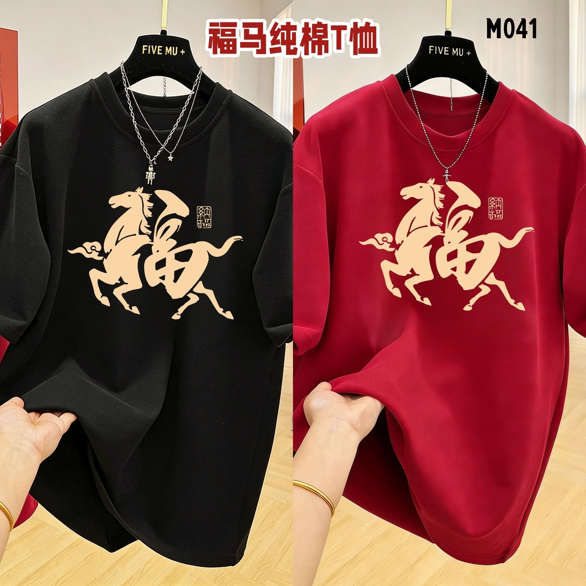 新年必穿的好运T🔥🔥!纯棉面料柔软透气不闷汗,版型宽松显瘦,红色喜庆、黑色百搭,新年穿出门就是好兆头~