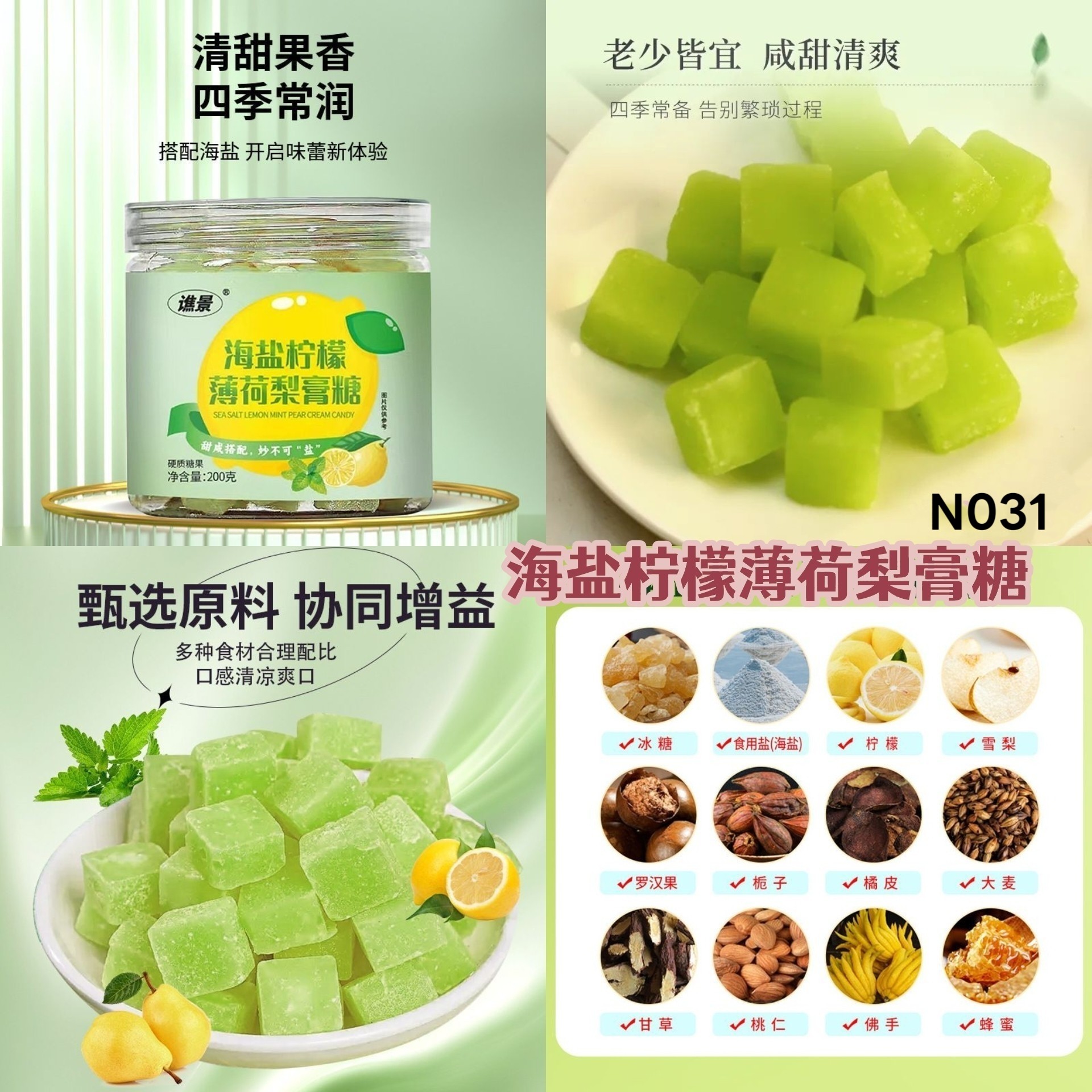 这款海盐柠檬薄荷梨膏糖很好吃😋😋,很冰凉,适合痰多,咳嗽,嗓子疼的人吃,效果极好!