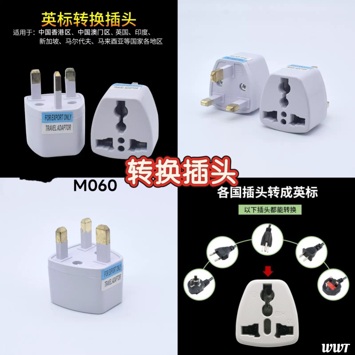 现在很多电器都是中国的,这个转换插头就必不可少了👍🏻,买一套就有10粒插头,要用时马上能找到😍