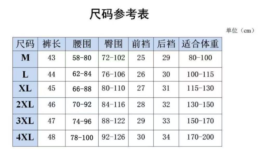 尺码:M-4XL