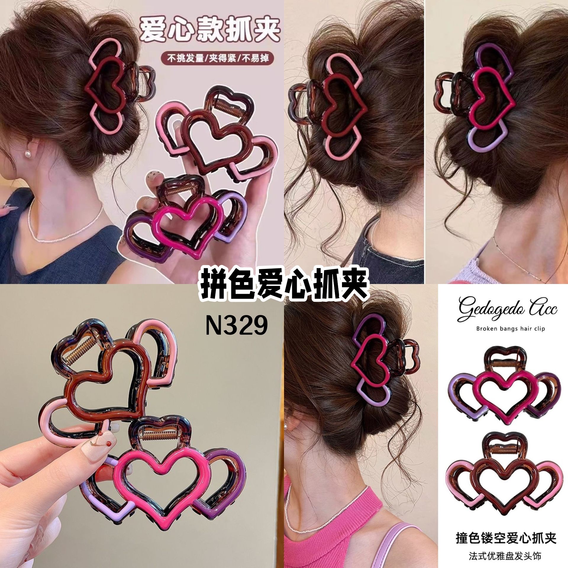🛍️N329 拼色爱心抓夹 RM8(2个)