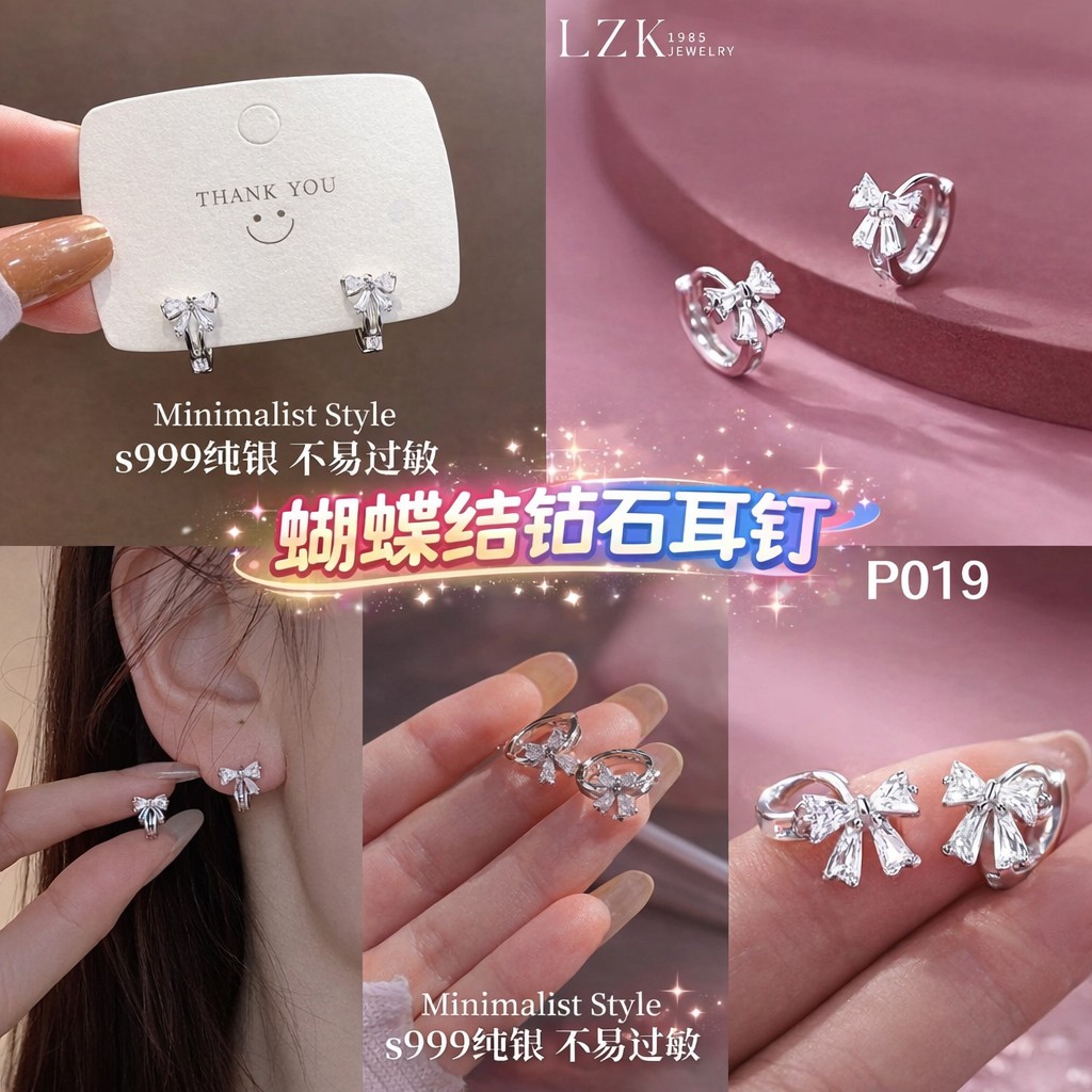 🛍P019 蝴蝶结锆石耳钉 RM8