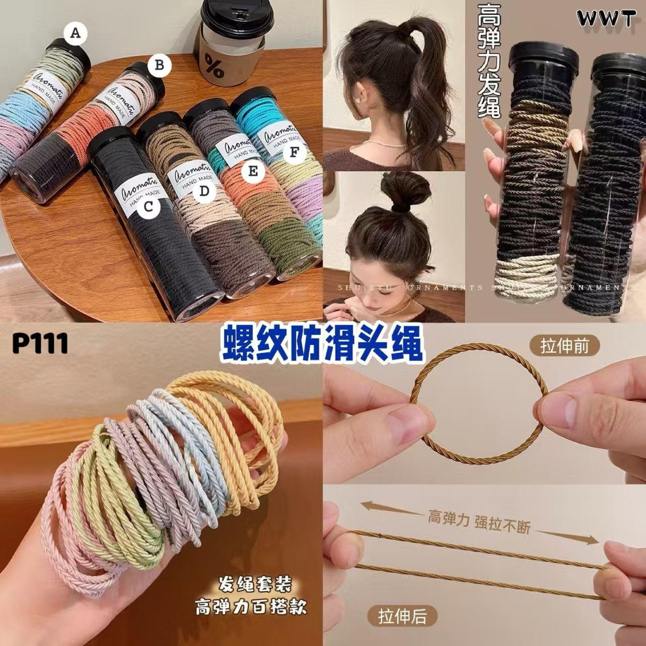 P111 螺纹防滑头绳 (2罐200条)