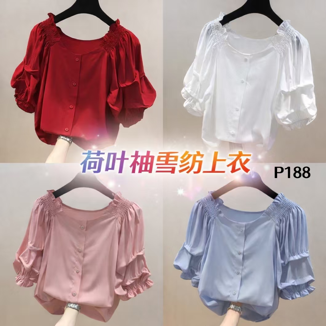 雪纺轻薄飘逸😍😍,荷叶袖遮手臂很友好,气质温柔又显瘦✨