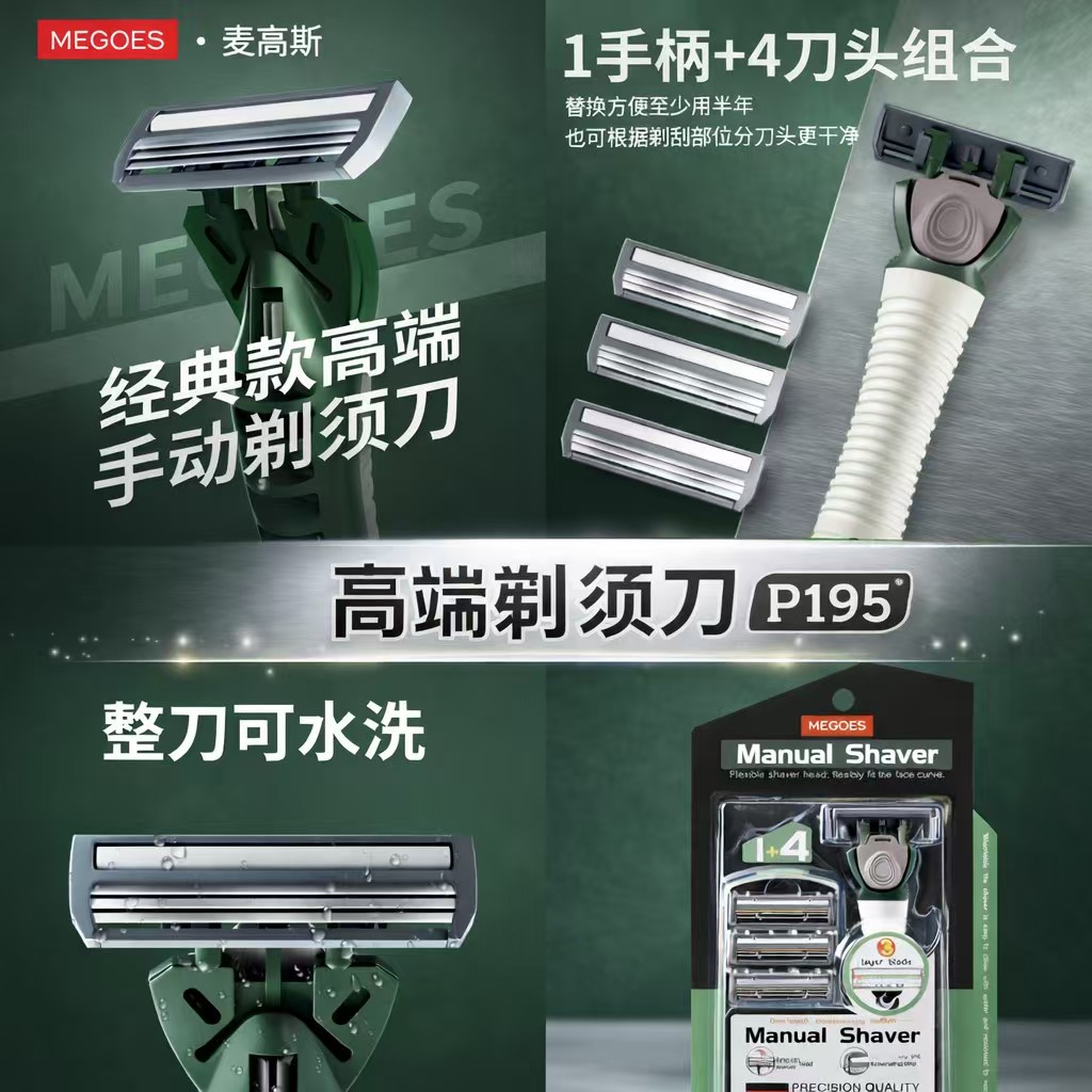 一手柄+4刀头组合,干净利落一刮到位 ‼️‼️,整刀可水洗,换刀方便,耐用又省心