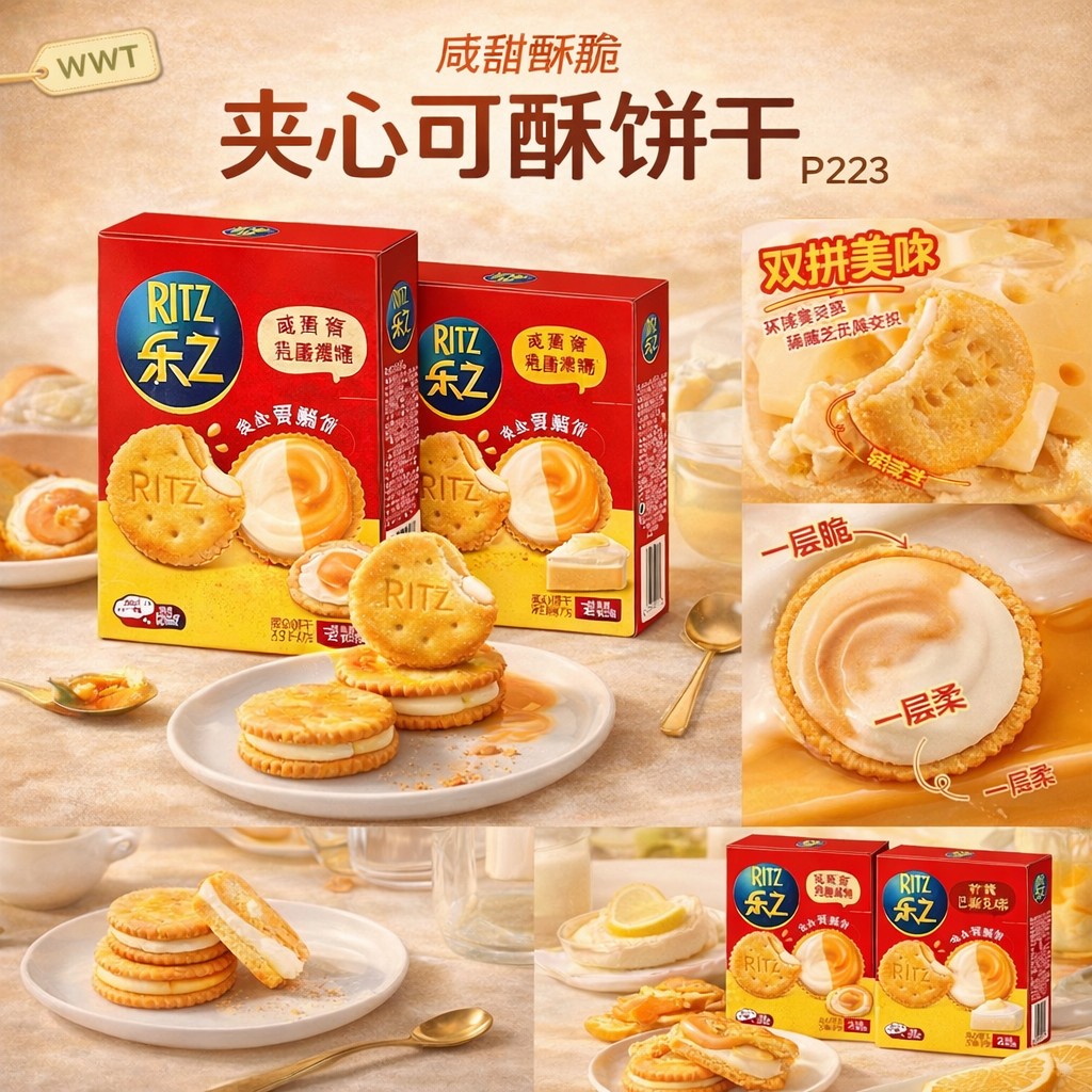 一口咬下去外面是酥脆饼干🍪,中间是香甜夹心😋😋,咸咸甜甜的味道真的很经典,越吃越停不下来~