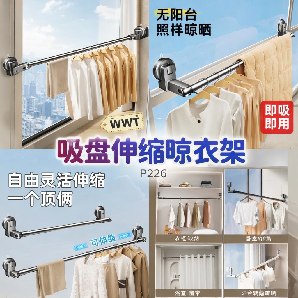 🛍P226 吸盘伸缩晾衣架 RM28