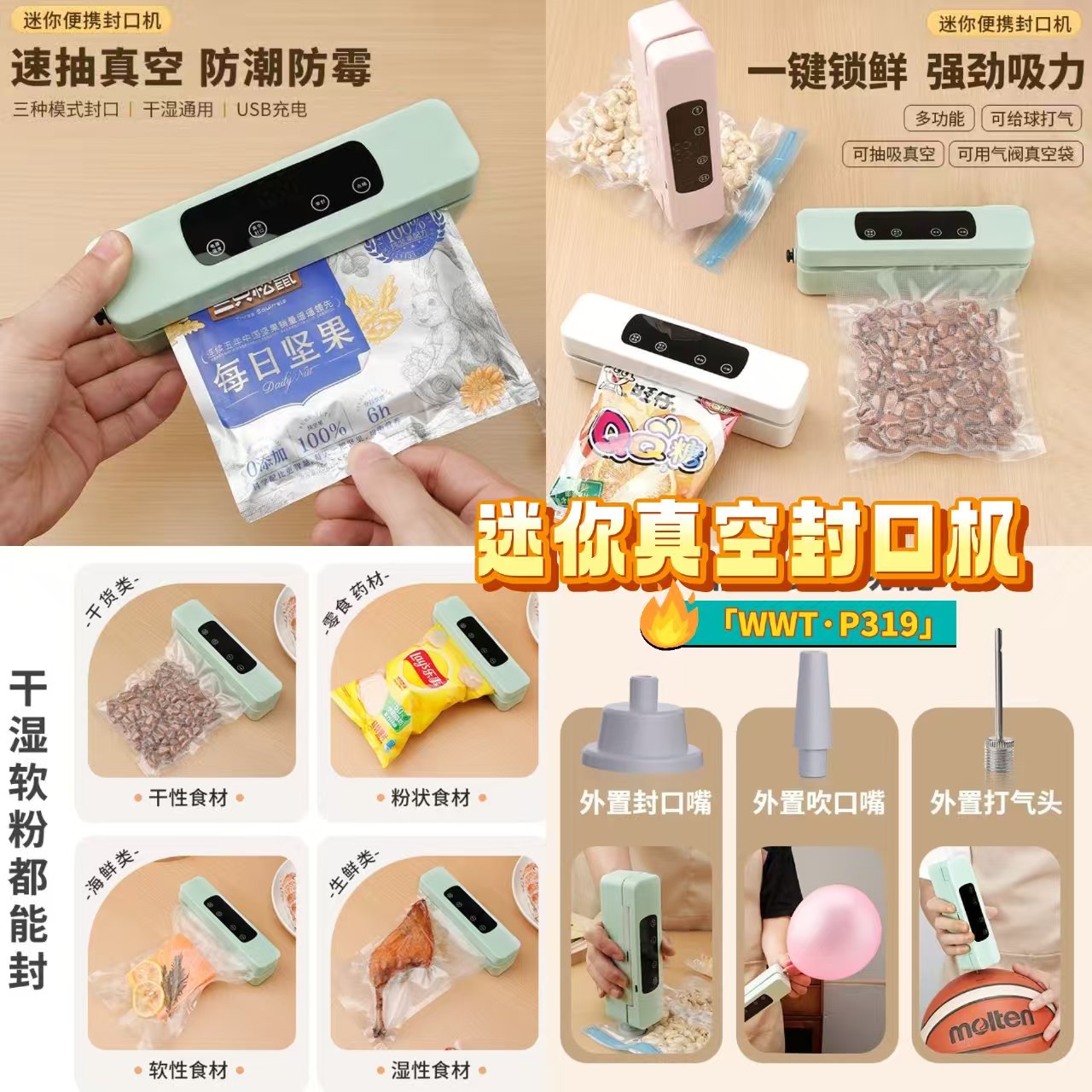 干货、零食、海鲜、粉类都能封口,还能抽真空或给球类打气,一机多用很方便‼️