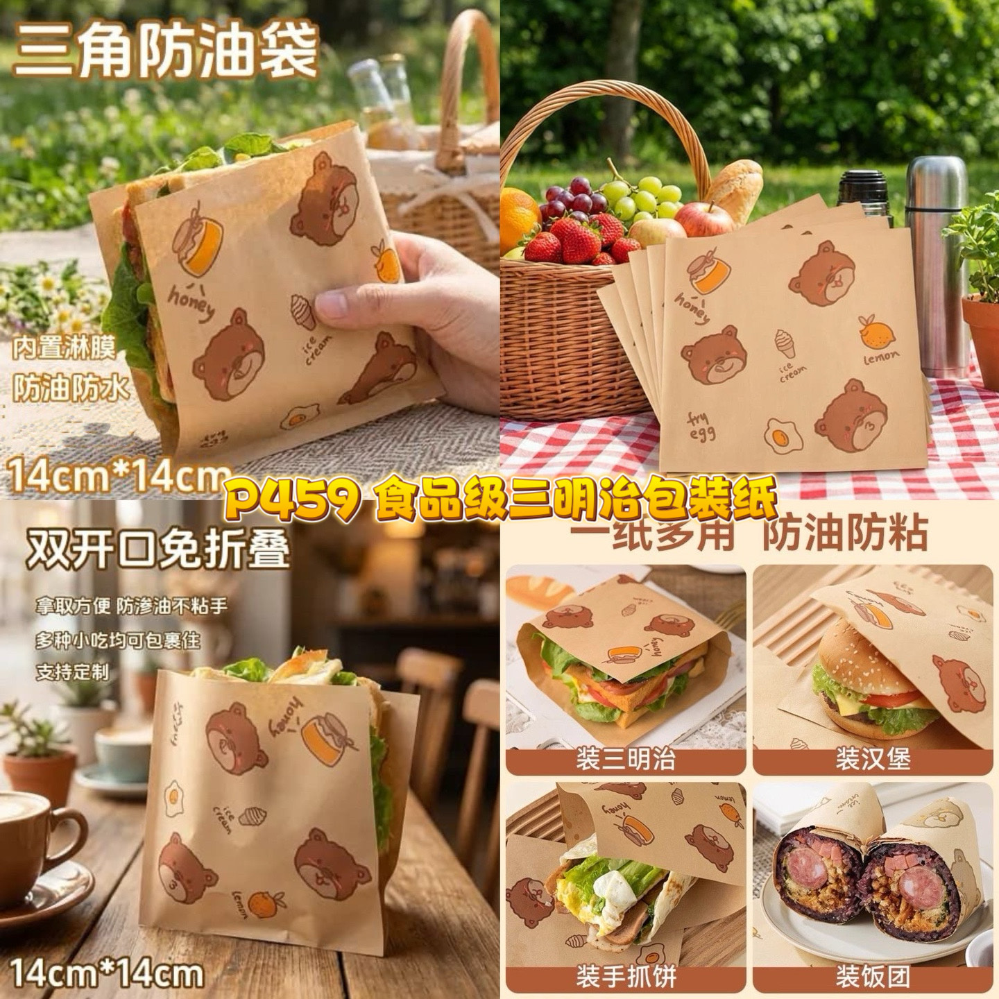 P459 食品级三明治包装纸 RM10(100张)