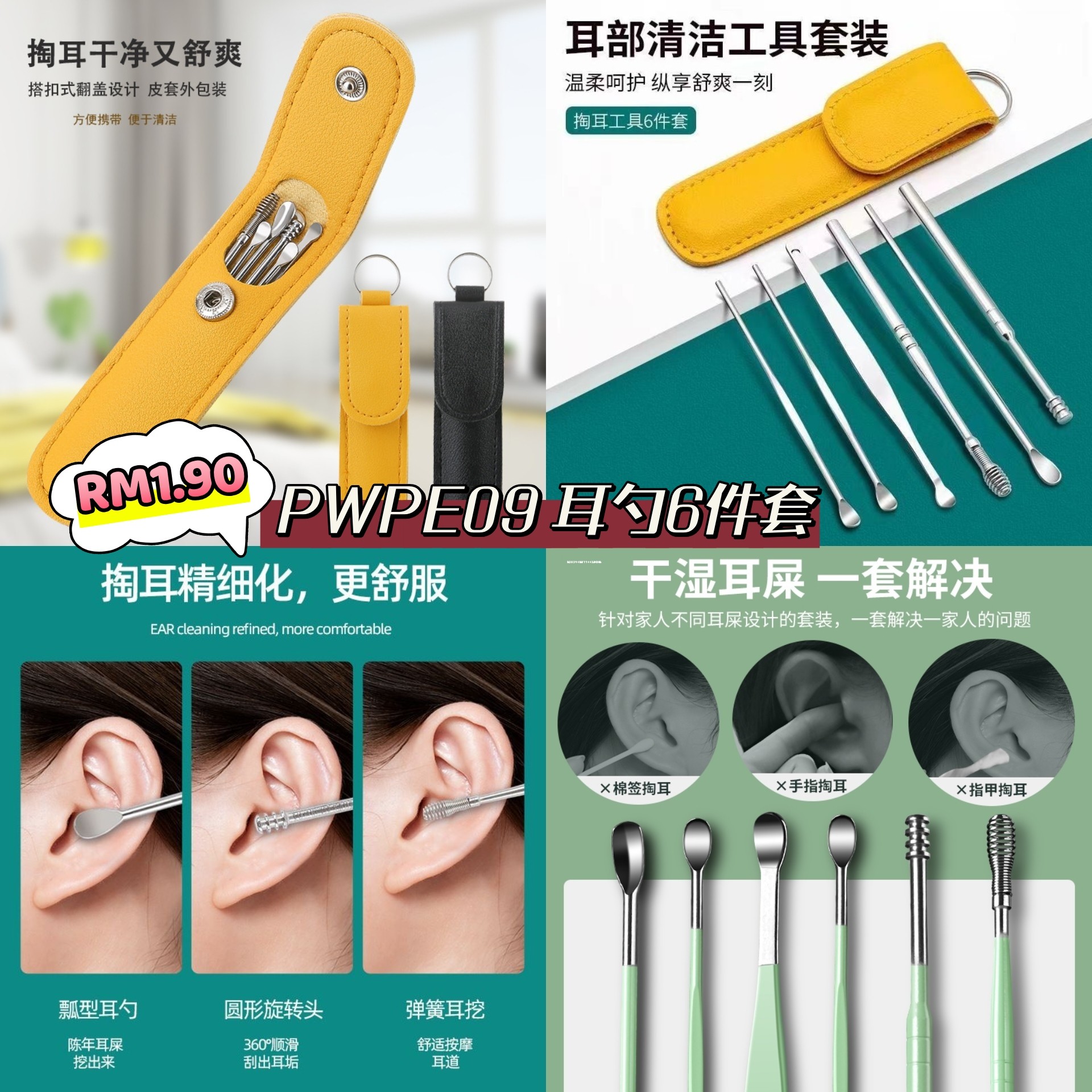 配备多种头型:勺型、弹簧、旋转、螺旋,一套搞定干湿耳屎👍🏻~附赠皮质收纳包,便携卫生不凌乱,颜色随机