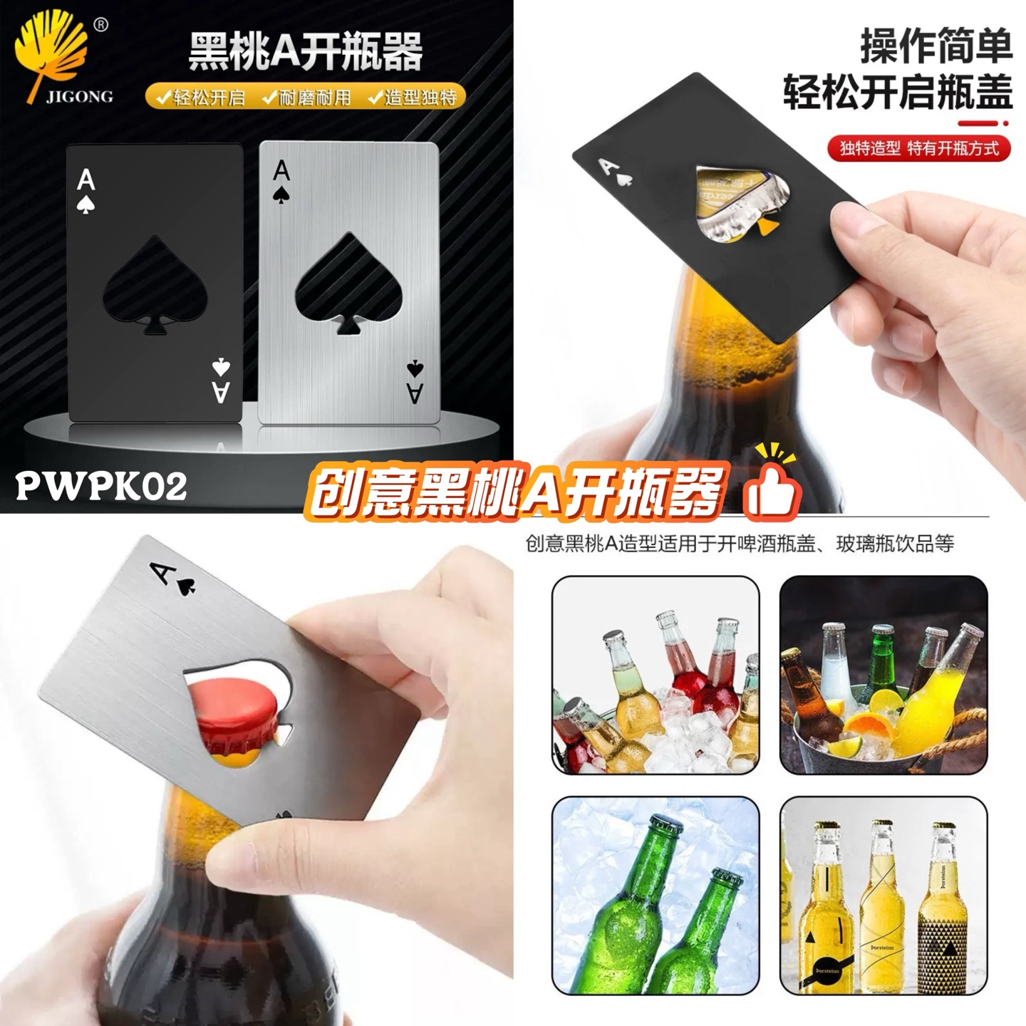 造型像一张牌,帅帅的🤭~开瓶轻松不费力,露营、聚会拿出来超有梗🔥,颜色随机发哦