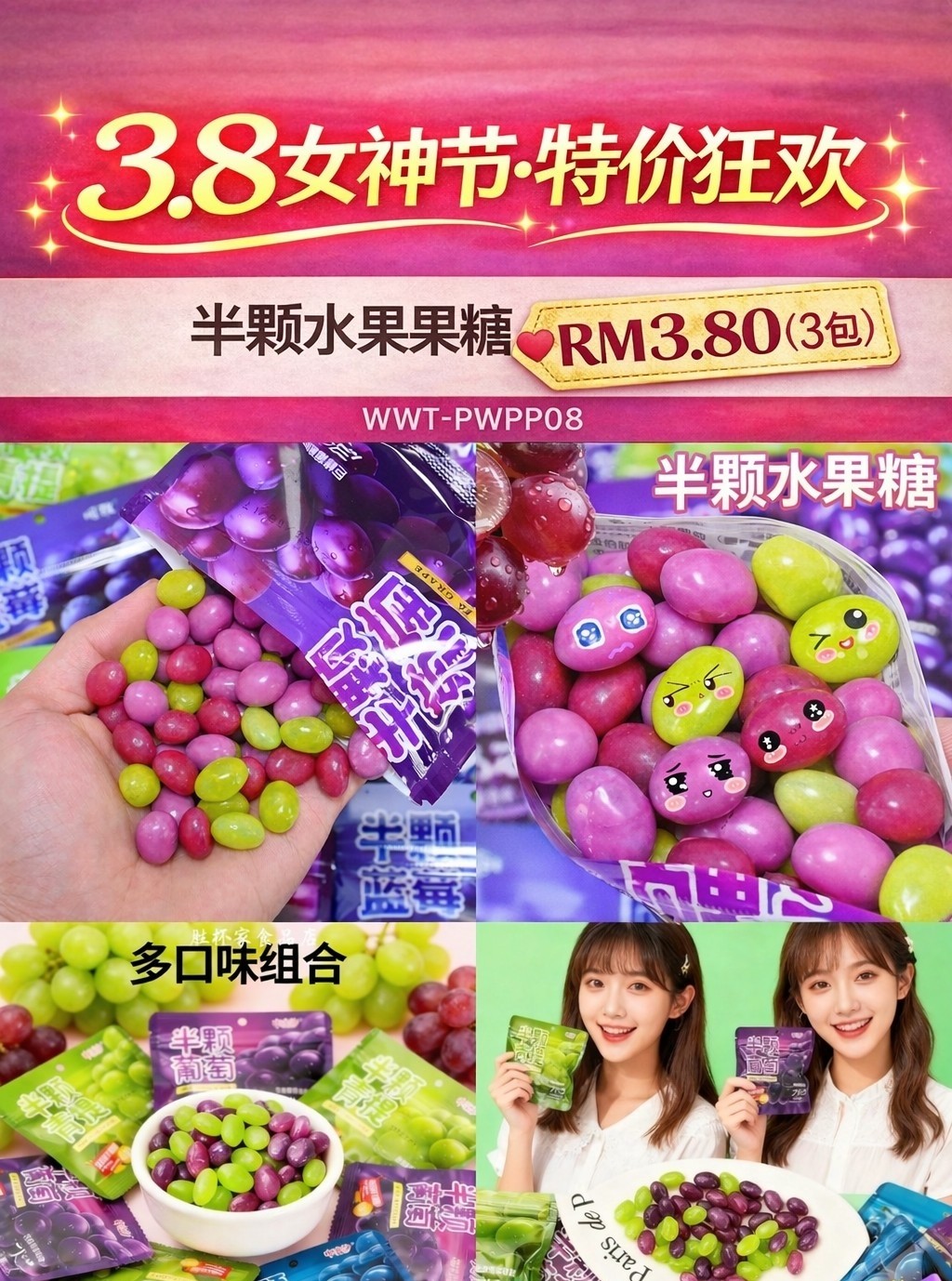 PWPP08 半颗水果糖果 RM3.80(3包)